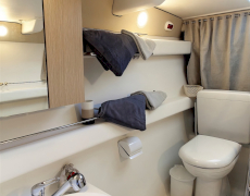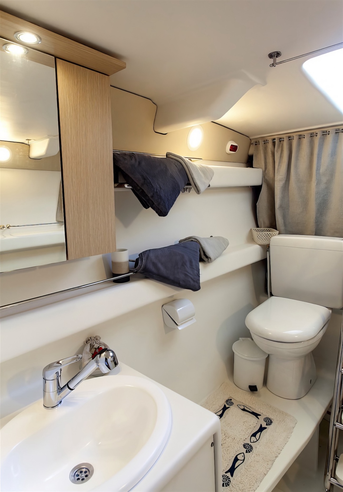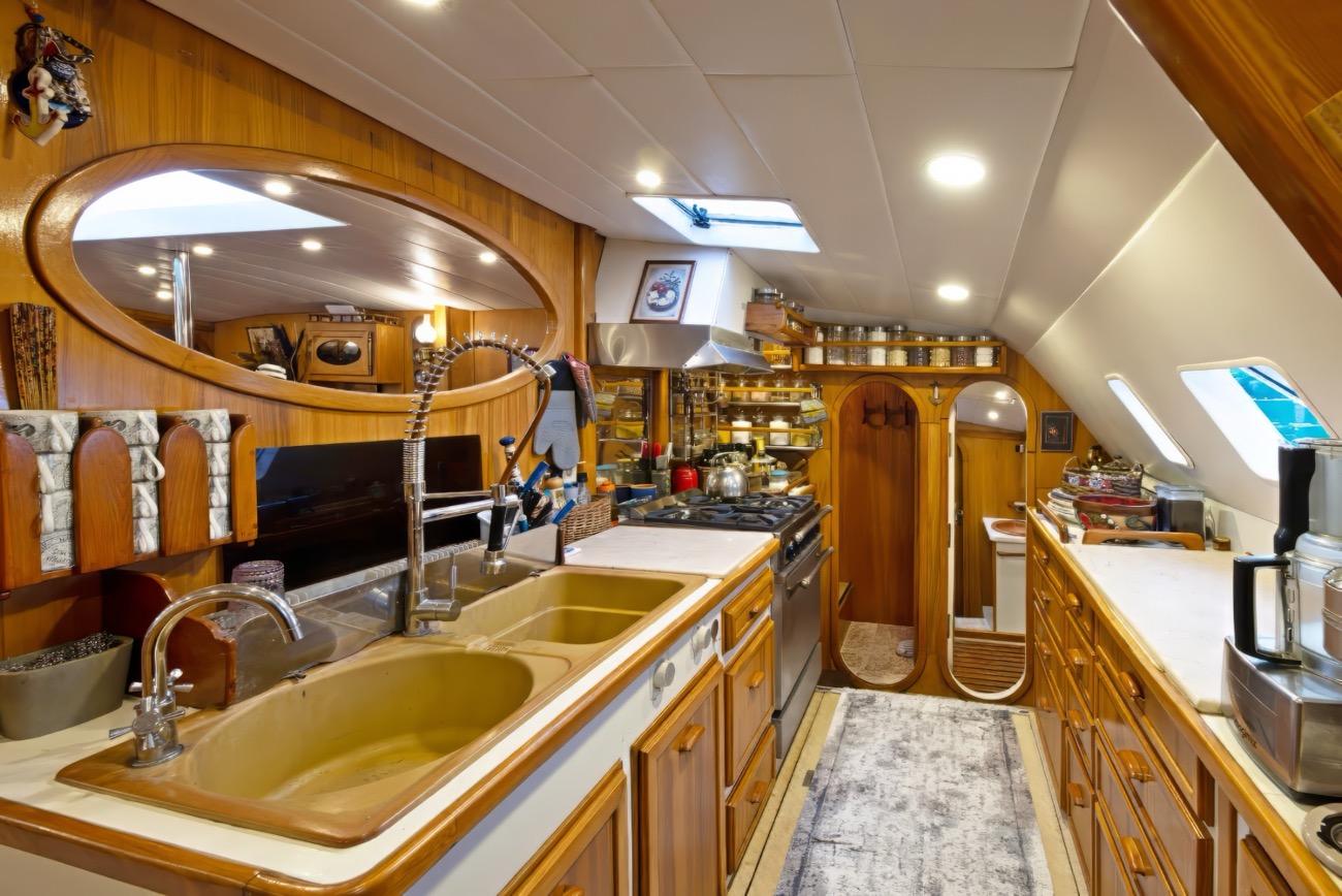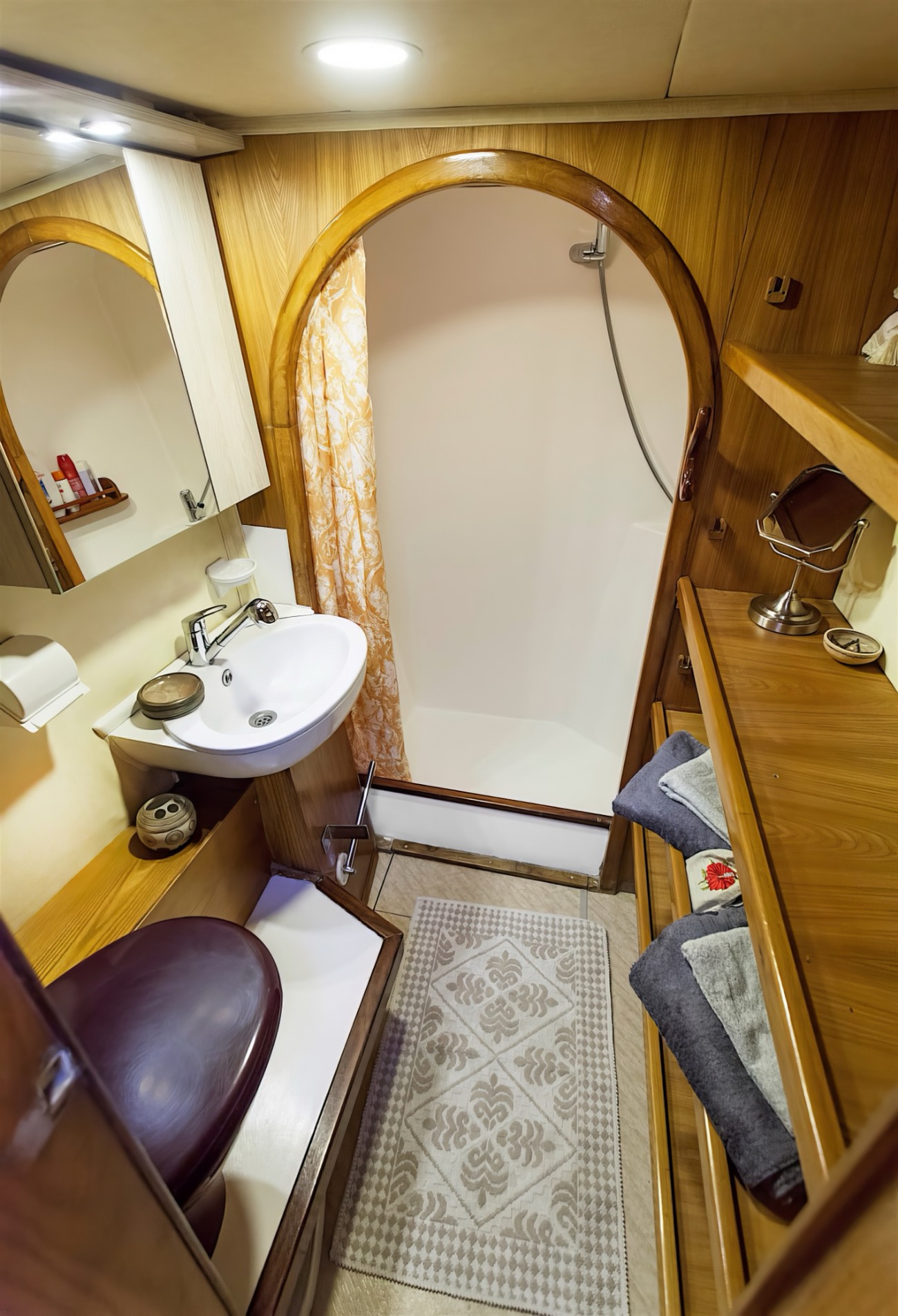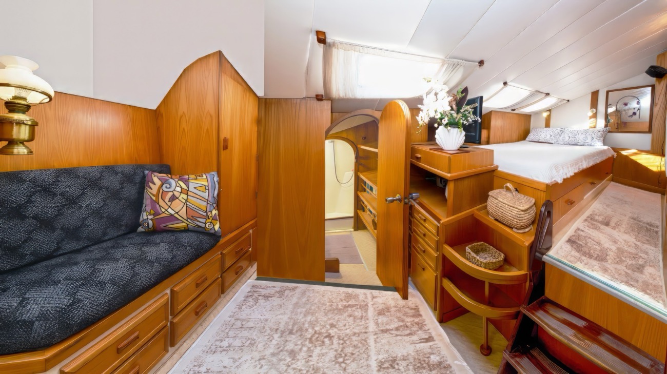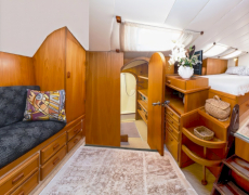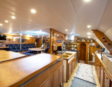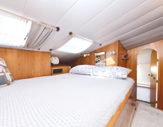 CONAN’S spacious interior comprises are large and well-lit salon, a tidy galley and four cabins. The yacht can accommodate a maximum of 12 guests, and has been chartered by four single people in the past, who have taken the opportunity to enjoy a private cabin. The master cabin offers a double berth, and an en suite, while two further guest cabins each offer a double berth plus a single berth. The fourth cabin is furnished with a double berth and an en suite.