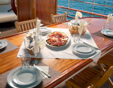 Charter rate includes, accommodation on board, 4 crew members, personal injury insurance for all guests (while on board),bed linen (1X change during the week), towels (2X change during the week), fuel for 4 hours cruising a day, air-conditioning for 8 hours per day, use of tender by captain (until evening), use of leisure equipment (except water toys that consume fuel).