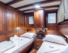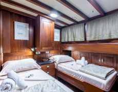 ANGELICA accommodates 10 guests in 5 spacious and comfortable cabins. 4 staterooms feature double beds, and 1 cabin is with twin sleeping places (2 beds 2m x 0,8m each). All the cabins have private ensuite facilities.