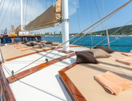 31-m gulet is crewed by four excellent yacht professionals who adore their work and always do their best to show the fantastic hospitality to their guests. You will enjoy staying on board ANGELICA whether it’s a family trip or you charter a yacht with your friends. Warmth and friendly atmosphere filled with fun of water sports activities are guaranteed with this beautiful vessel.