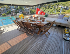 VAT, all meals and drinks for the charter, fuel for motor-operated equipment (tender, water sports), all marinas, all land tours, transfers, any personal expenses of the guests, crew gratuity (10-15% from the charter fee). Fuel surcharge for portion of charter outside of Turkish waters, any customs expenses if applicable.