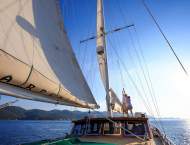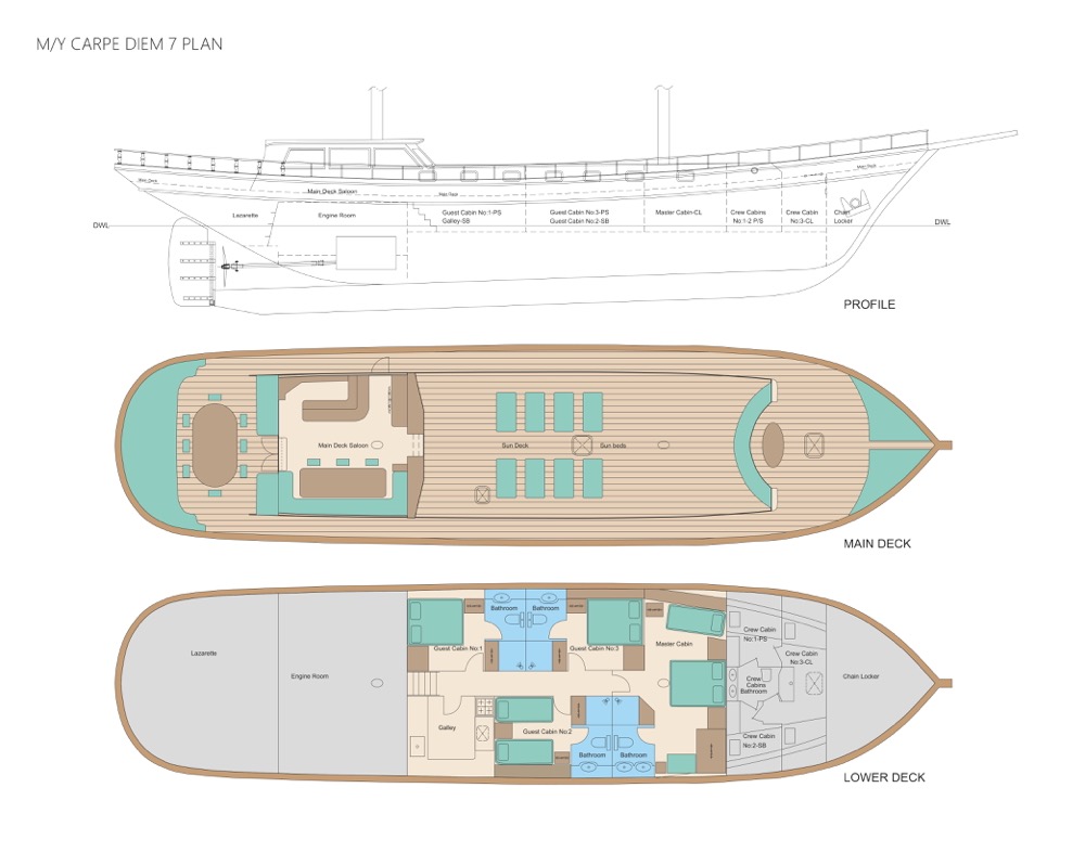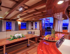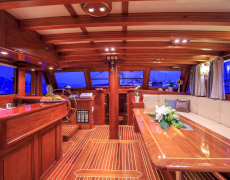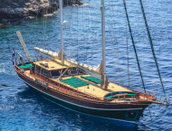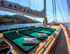 The 112-foot CARPE DIEM 7 is a true Aegean beauty! With her well-rounded aft and high, pointed bow, CARPE DIEM 7 is a traditional gulet with beautiful classical lines. She is one of the finest Turkish gulets to have been constructed, and having undergone several major refits in recent years, now meets the needs of the discerning charterer. As a traditional gulet, properly-rigged for sailing, CARPE DIEM 7 is one of few gulets that offers a true sailing experience.