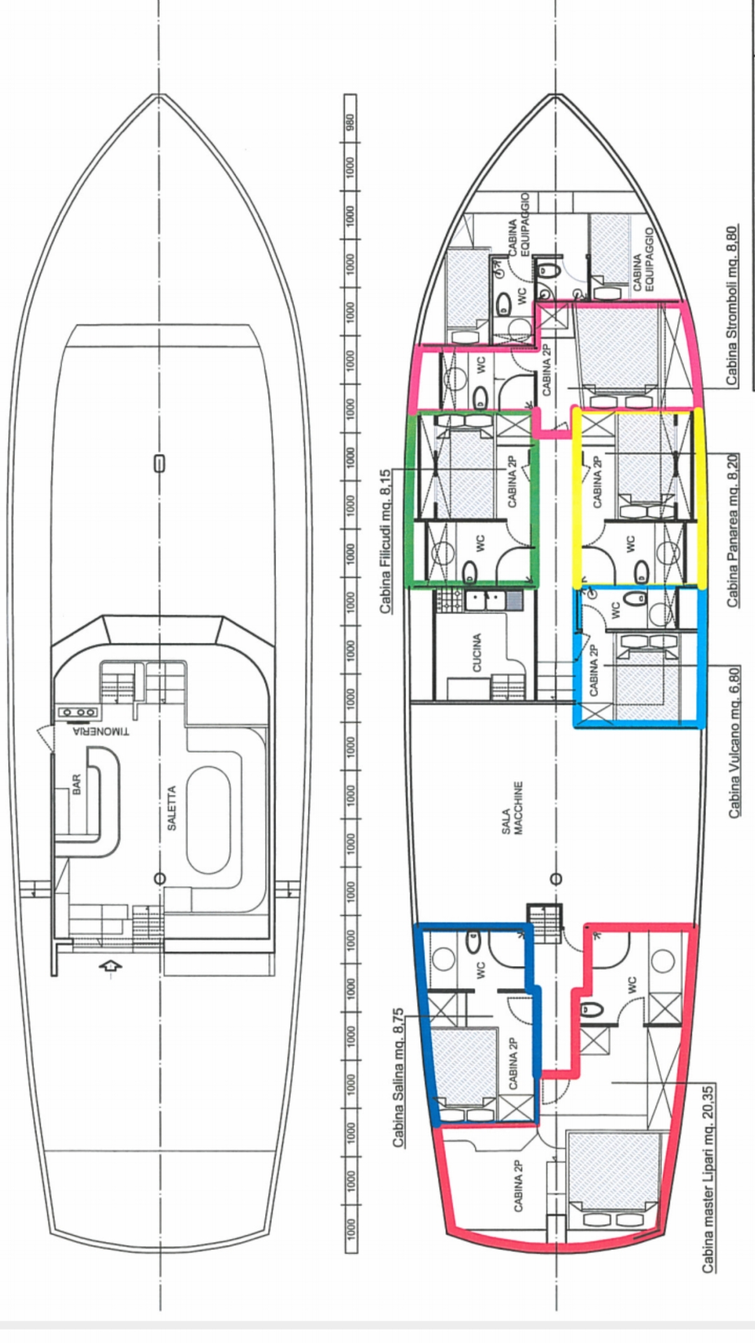 Charter price includes insurance of the yacht, wages and food for the crew, service on board, cabins' daily cleaning, 3 Italian crew (skipper, cook, sailor/maid), fuel for 4 hours sailing per day, using water and equipment on board (fishing gear, snorkeling, etc, if available), bed sheets and towels a change per week, Sun towels, free wifi, Italian VAT, generator working hours for the air condition is limited to 4/6 hrs a day (no use during the night)