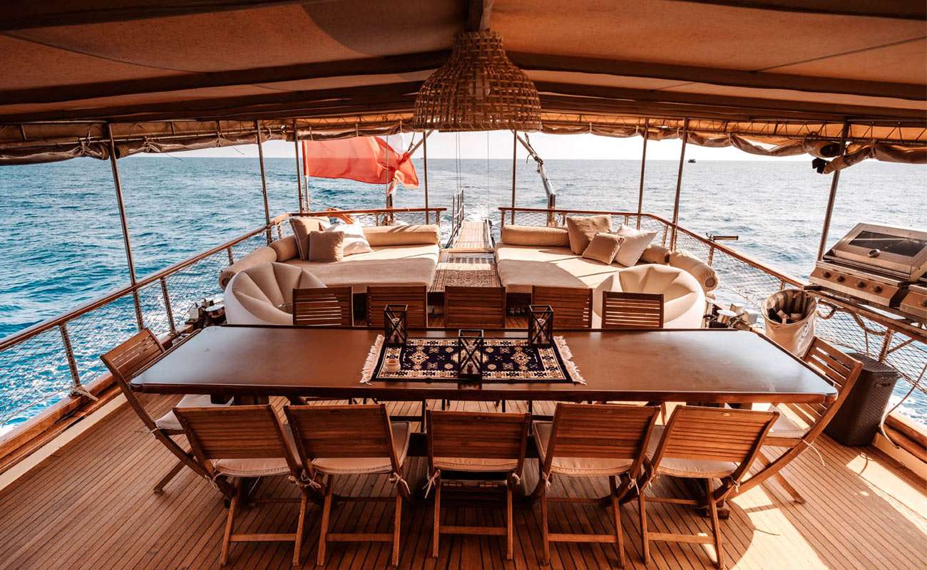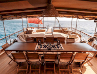 The price includes, VAT, boat rental for exclusive use,4 crew members (captain, sailor, cook, steward), welcome cocktail, daily cleaning, linens, towels, bath towels, fuel for max 4 hours navigation per day, fuel for generator 4 hours per day, last night moorings, use of onboard equipment.