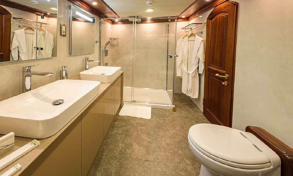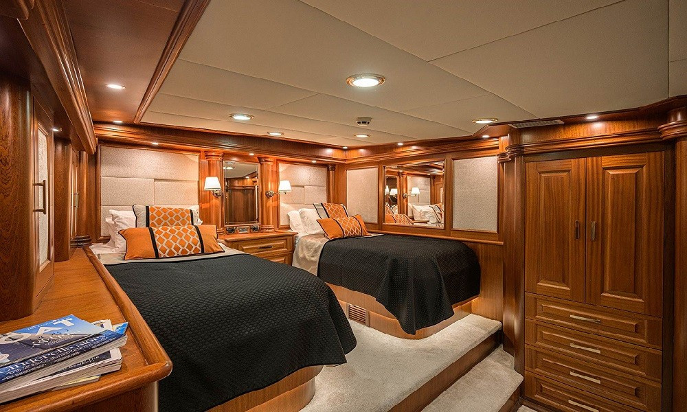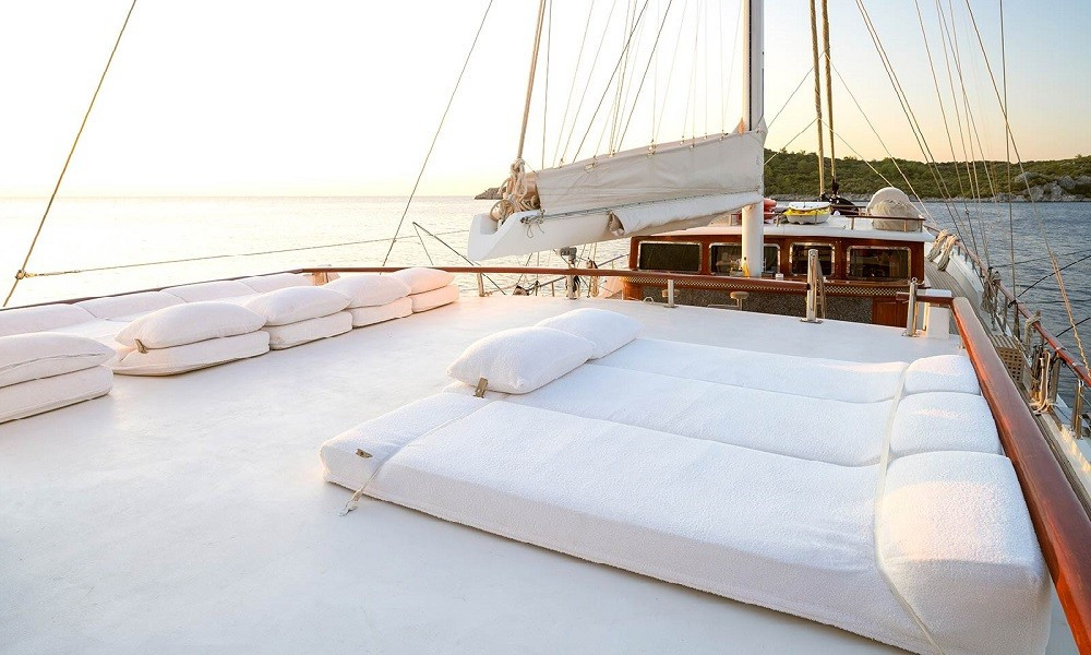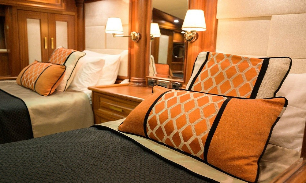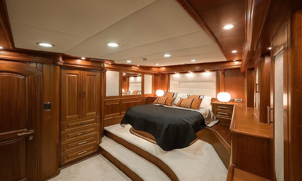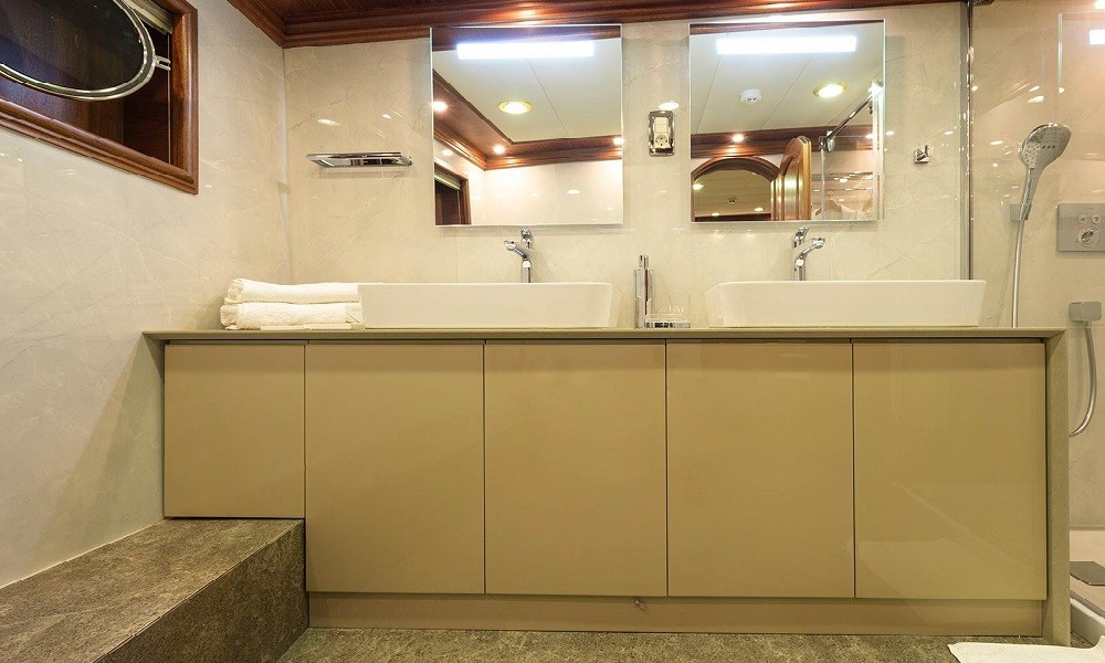 KADIR KAPTAN’s interior holds 6 cabins for up to 12 guests, five of which are double cabins and one of which is a twin. This layout proved so popular that it was re-created in the design of MARE NOSTRUM.