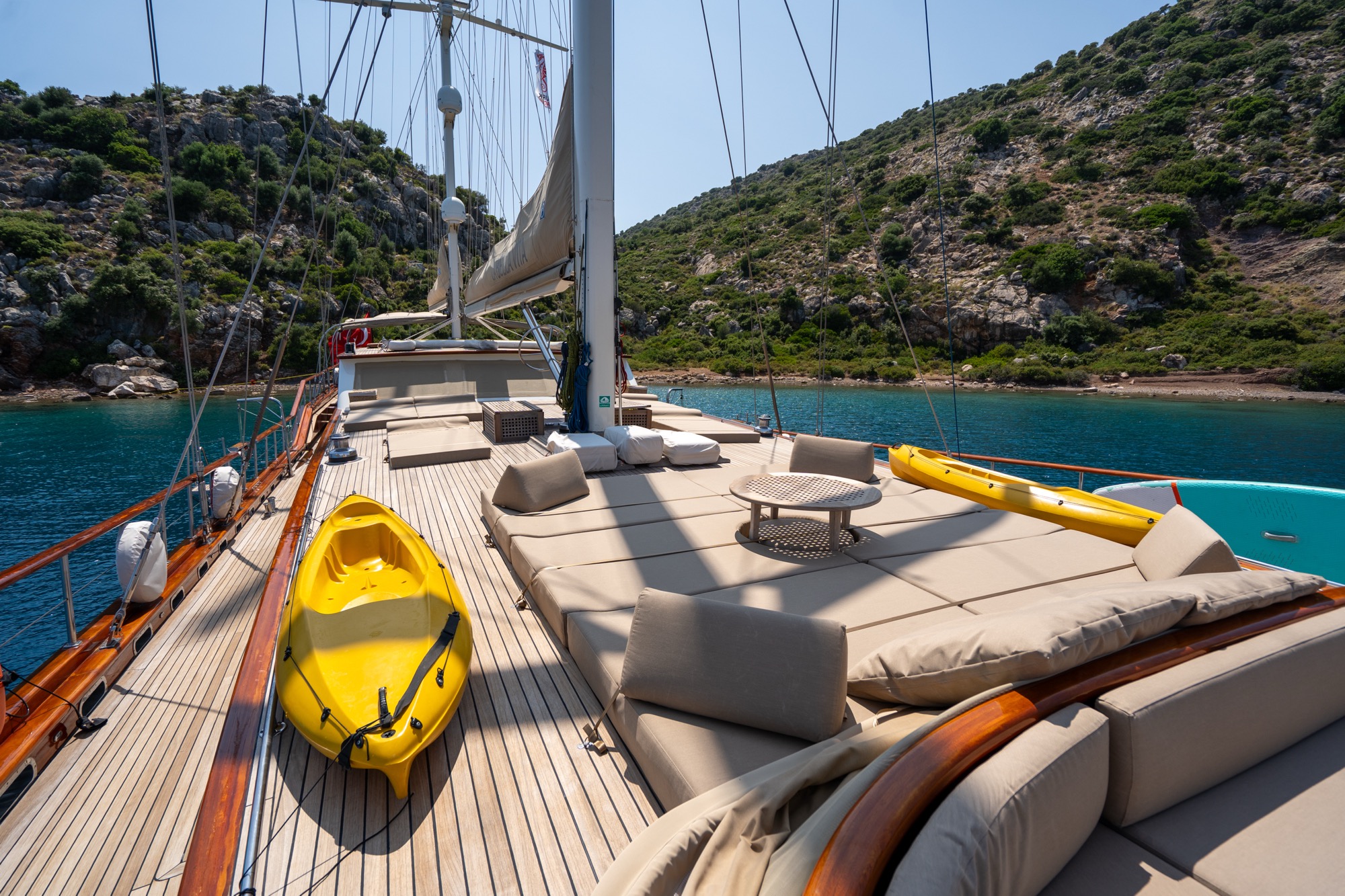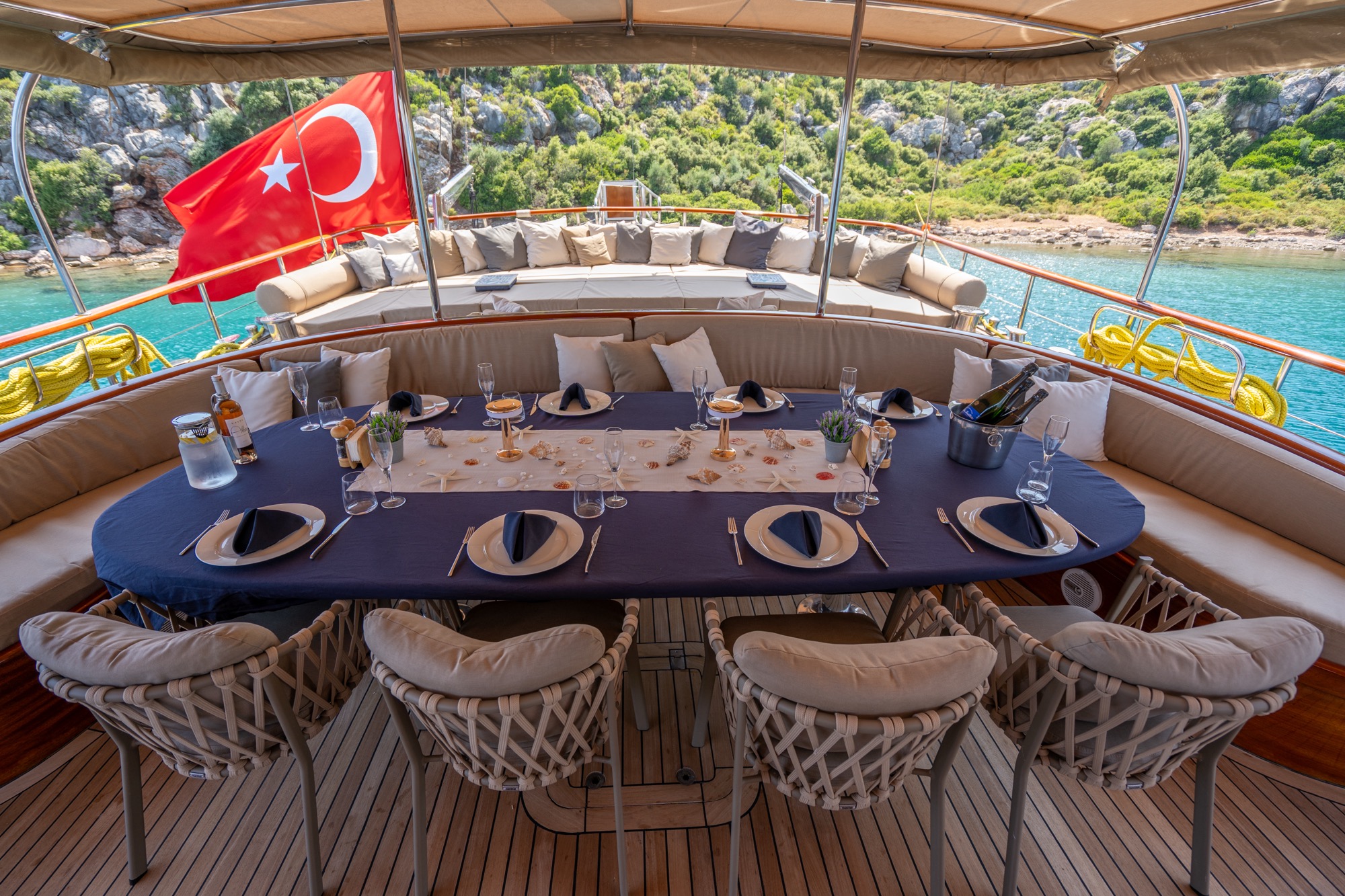 VAT, all meals and drinks for the charter, fuel for motor-operated equipment (tender, water sports), all marinas, all land tours, transfers, any personal expenses of the guests, crew gratuity (10-15% from the charter fee). Fuel surcharge for portion of charter outside of Turkish waters, any customs expenses if applicable.
