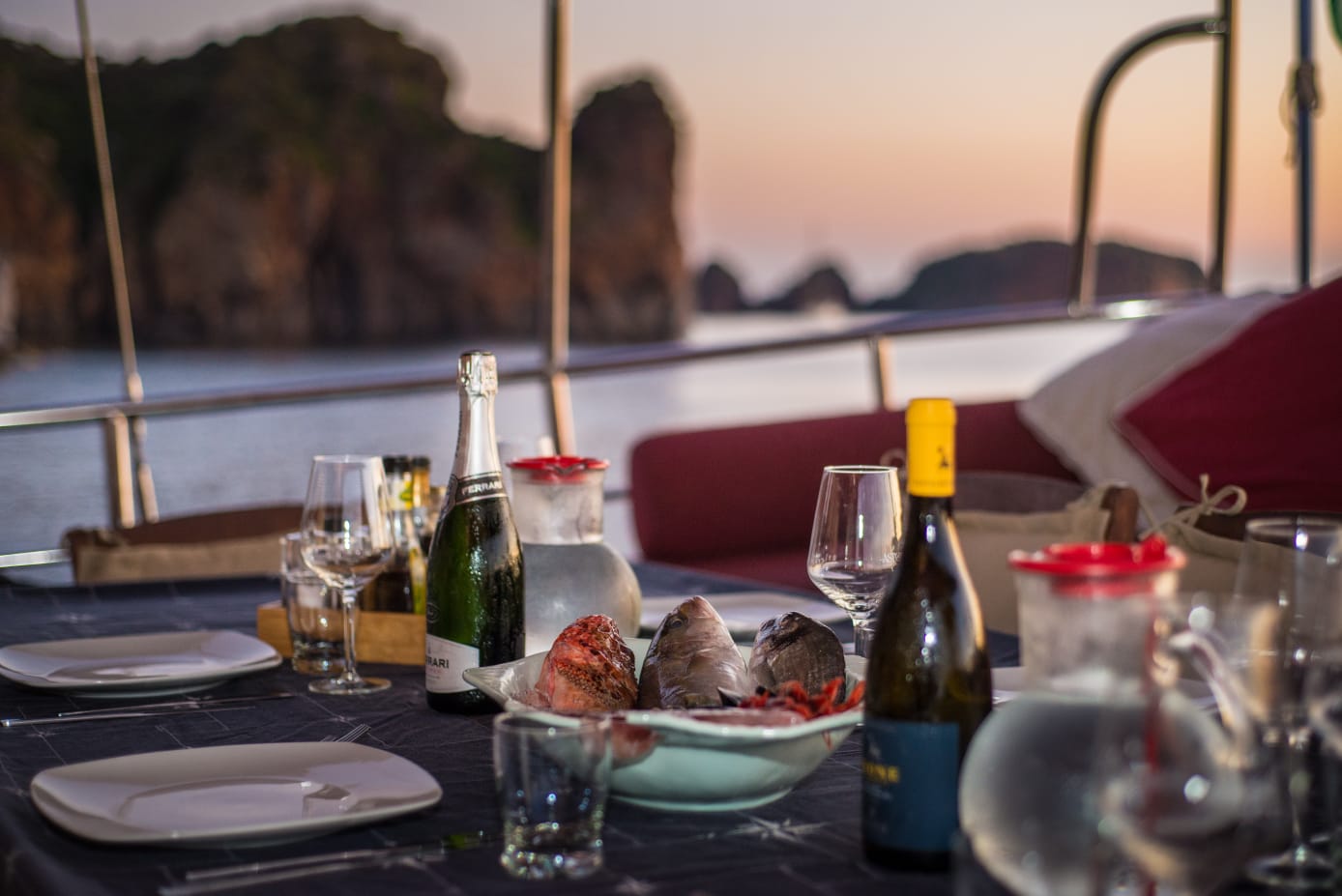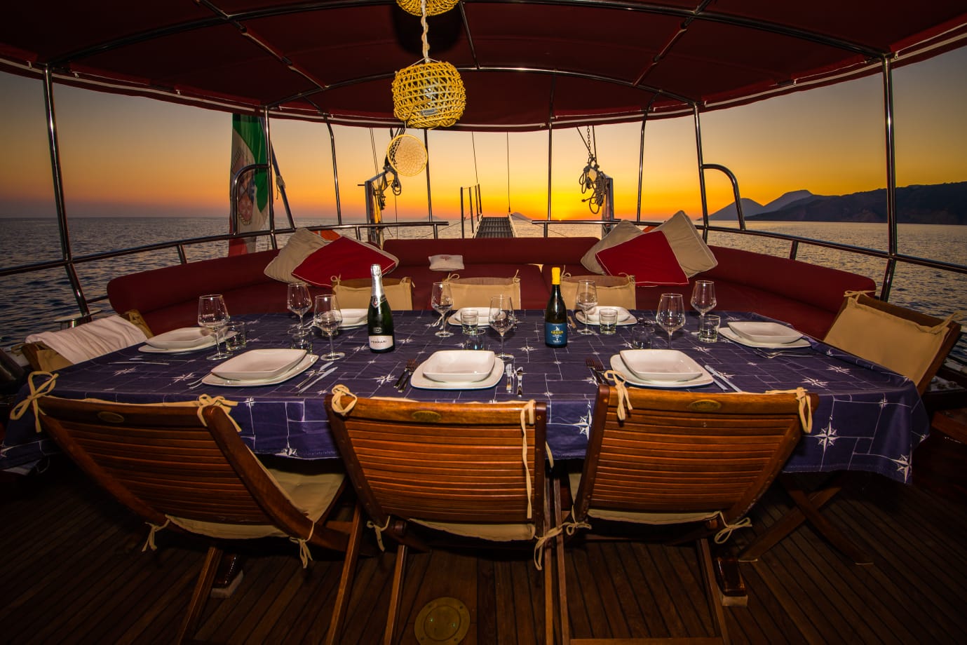 Yacht prices includes, Insurance of the yacht, wages and food for the crew, service on board, cabins' daily cleaning 3 Italian crew (skipper, cook, sailor/maid). Fuel for 4 hours sailing per day, using water and equipment on board (fishing gear, snorkeling, etc, if available) Bed sheets and towels a change per week , Sun towels , free wifi Generator working hours for the air condition is limited to 4/6 hrs a day (no use during the night)