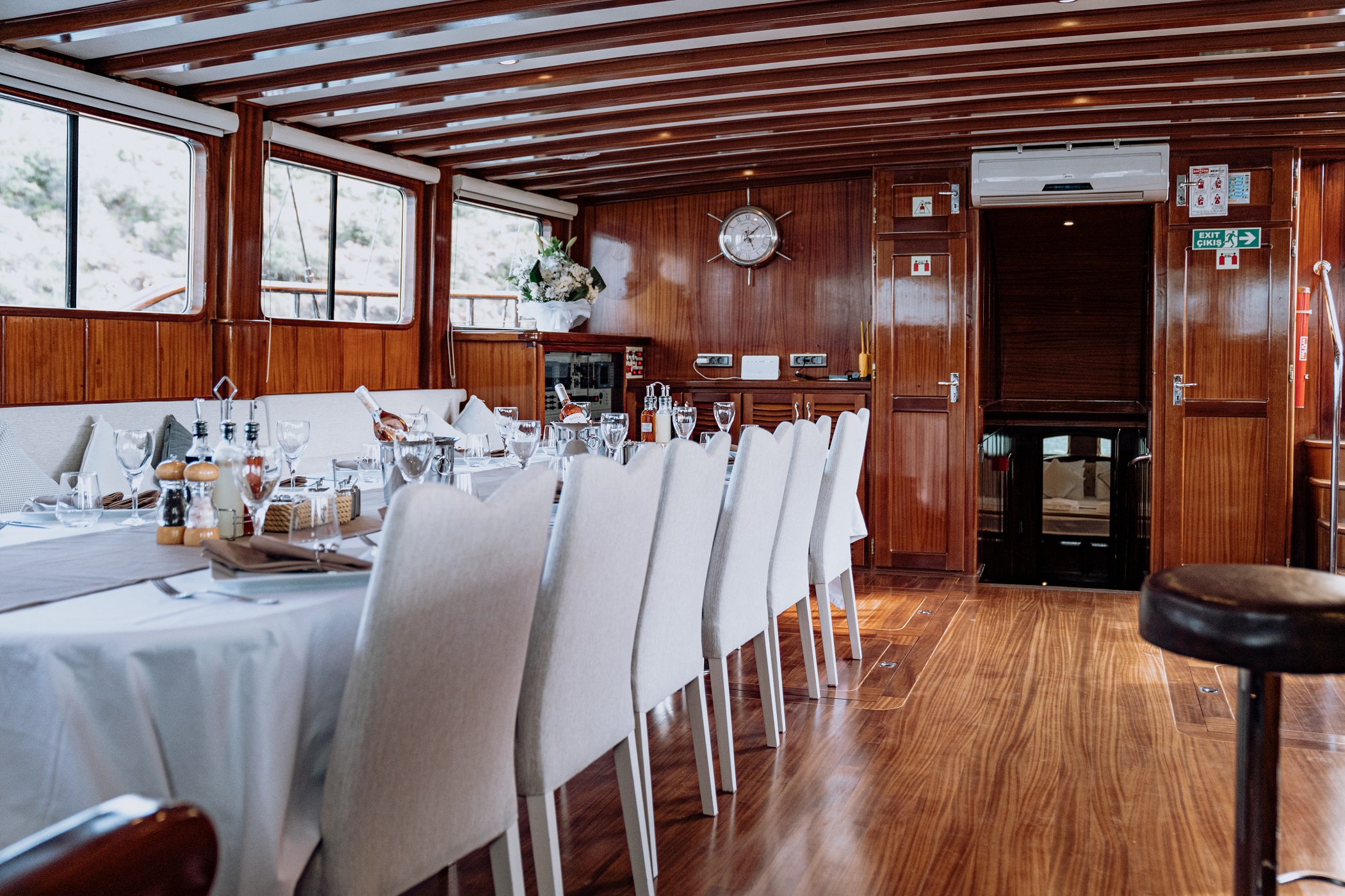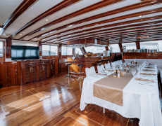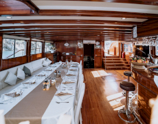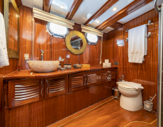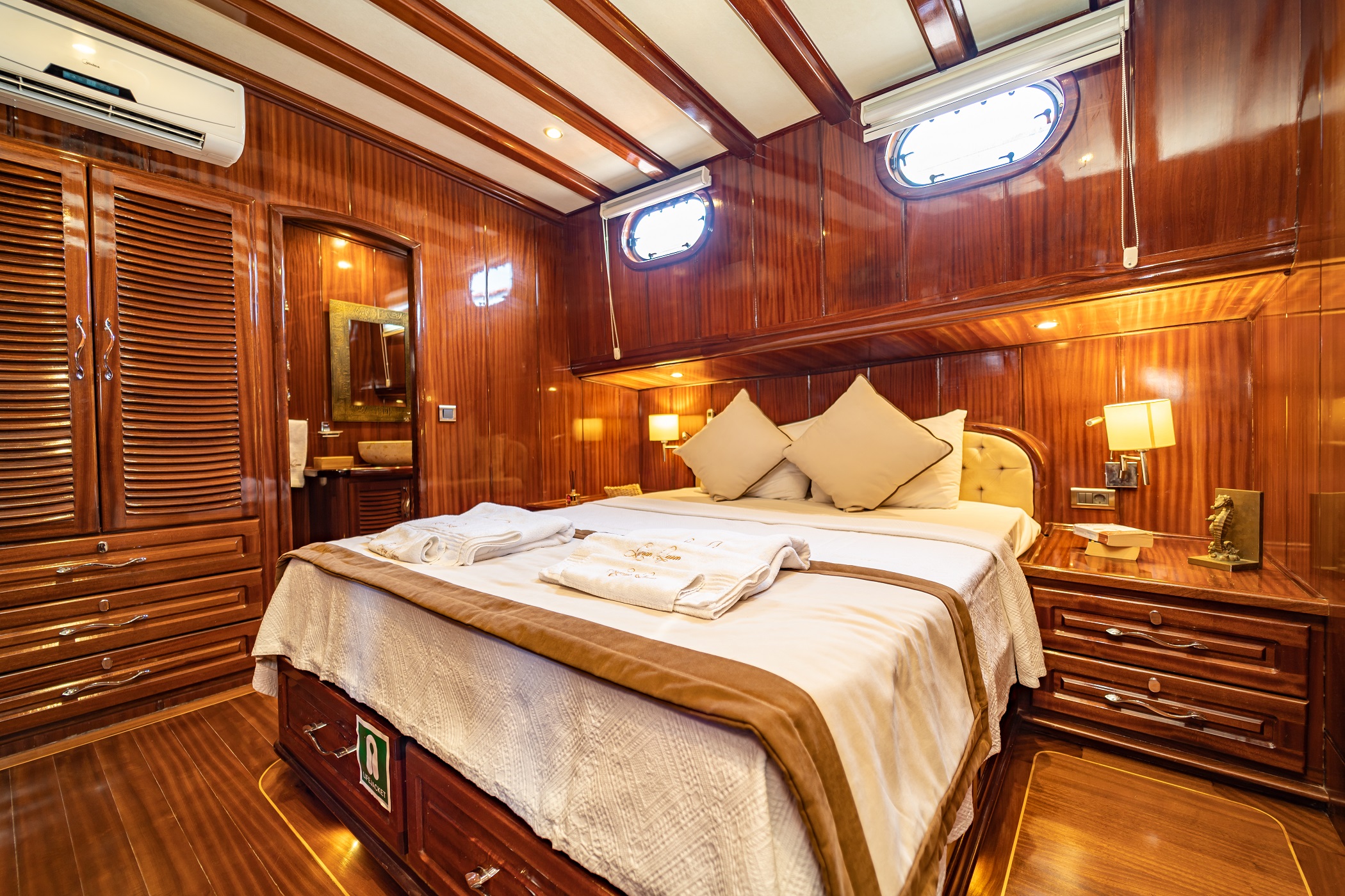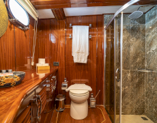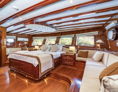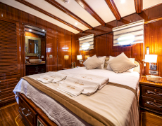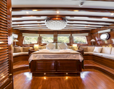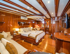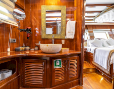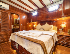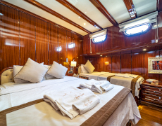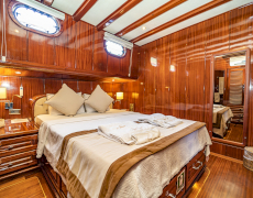 She accommodates 18 guests in 8 spacious and perfectly maintained cabins. The yacht LYCIAN QUEEN has 1 master cabin, 1 VIP suite, 4 double staterooms and 2 triple cabins. Each triple stateroom features a double and a single bed. There’s plenty of storage space for guests’ belongings in each cabins and a private ensuite bathroom.