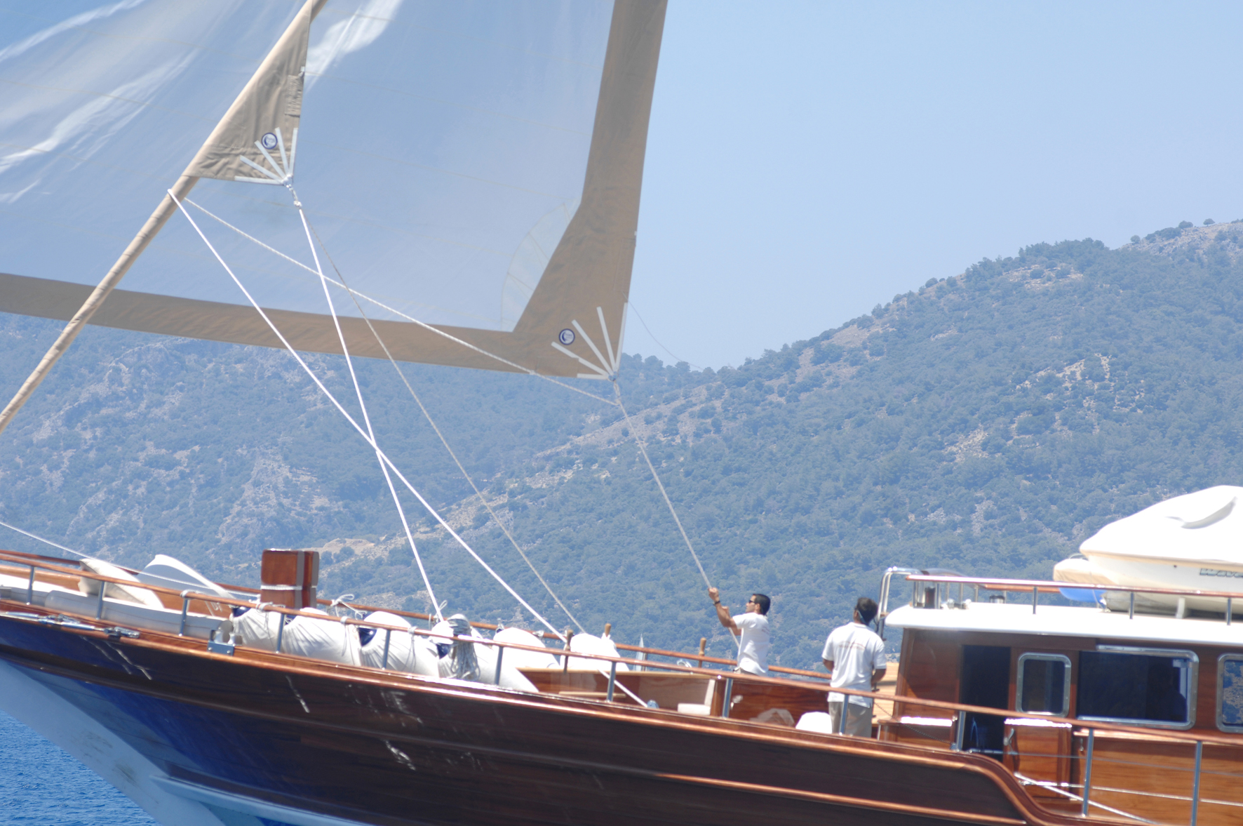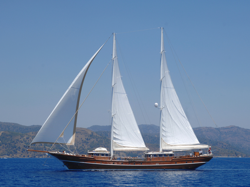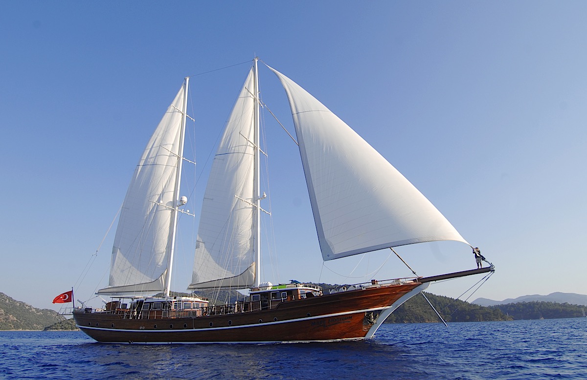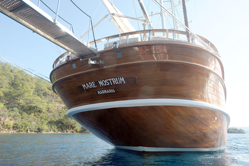 MARE NOSTRUM was designed and built in Turkey specifically for private yacht charter with a strong schooner rig, which means that she will sail well when the winds are favourable. Every one of her guests enjoys the utter tranqulity of being aboard as she drifts quietly under sail, and they watch the passing scenery, soak up the sun and keep an eye out for pods of playful dolphins.