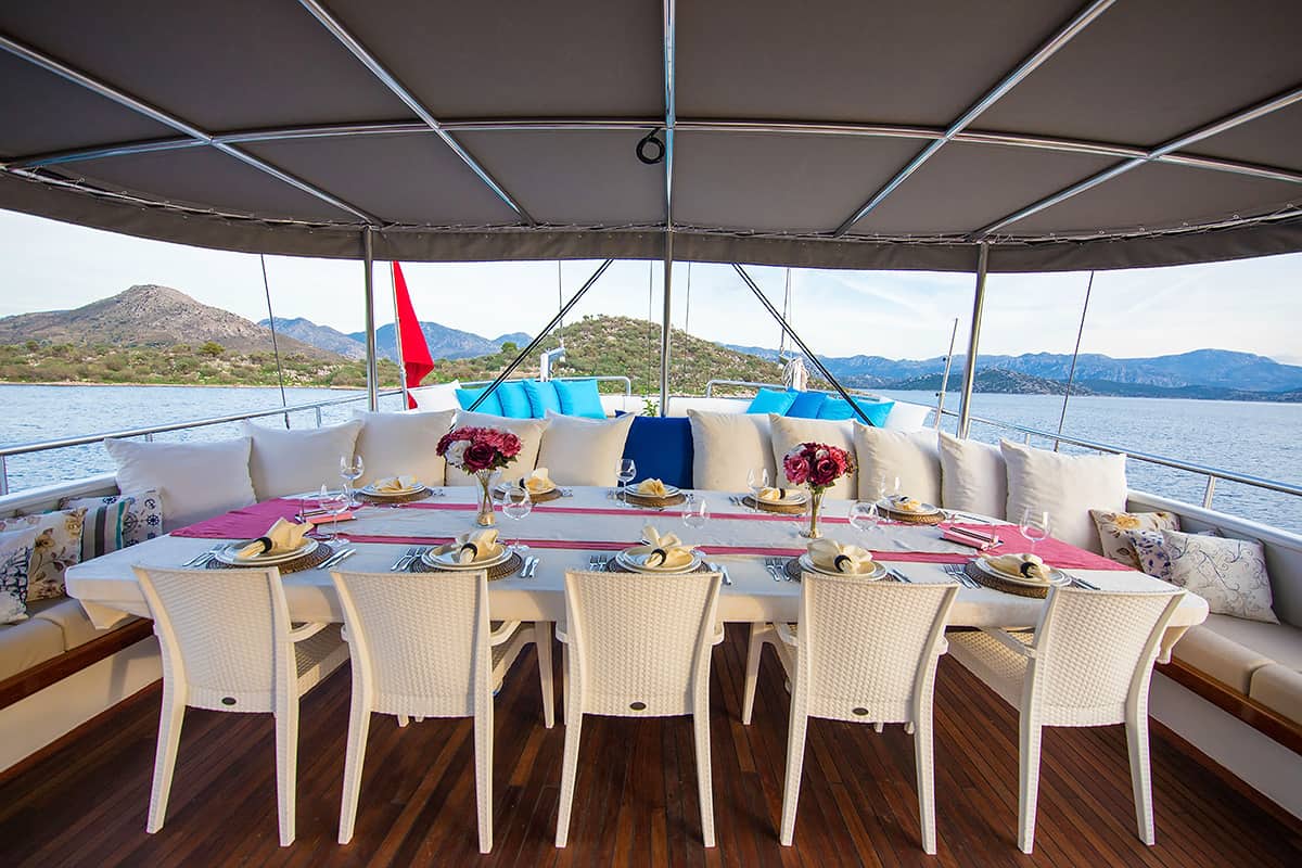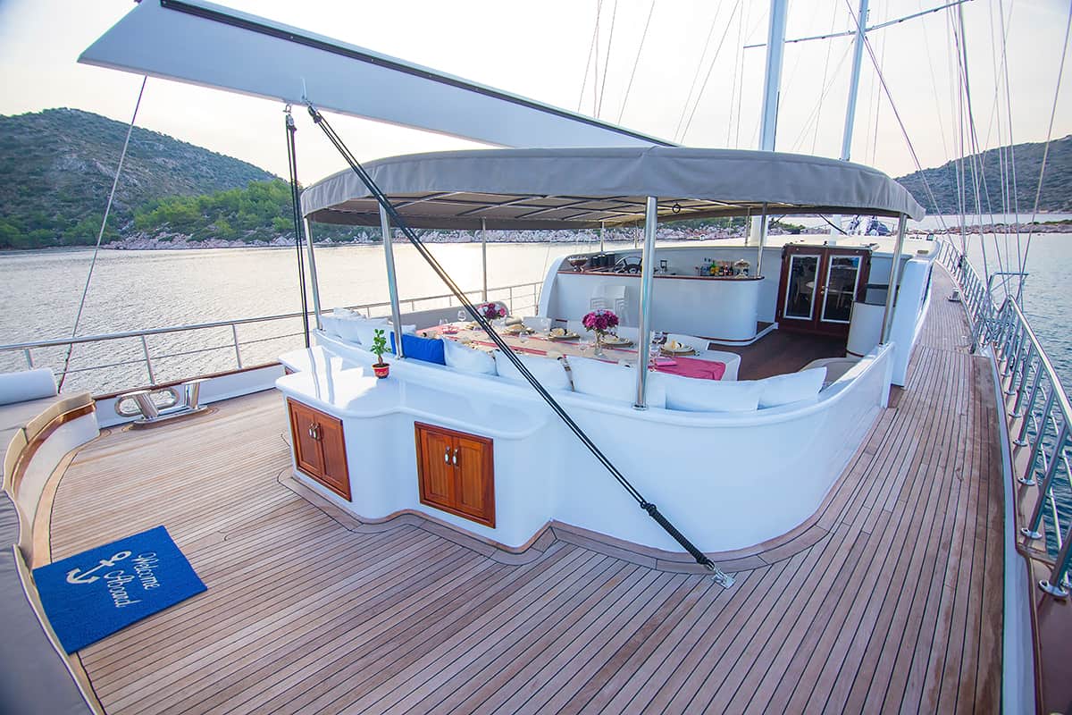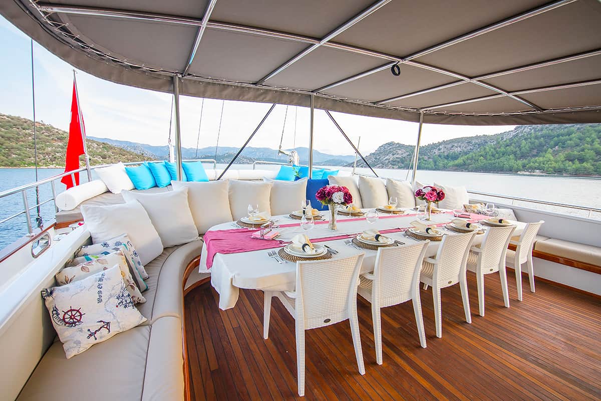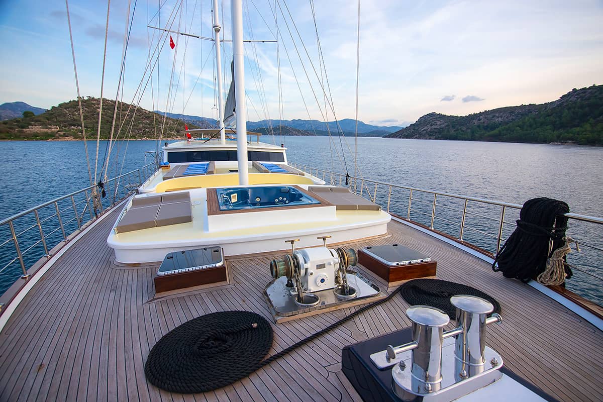 VAT, all meals and drinks for the charter, fuel for motor-operated equipment (tender, water sports), all marinas, all land tours, transfers, any personal expenses of the guests, crew gratuity (10-15% from the charter fee). Fuel surcharge for portion of charter outside of Turkish waters, any customs expenses if applicable.