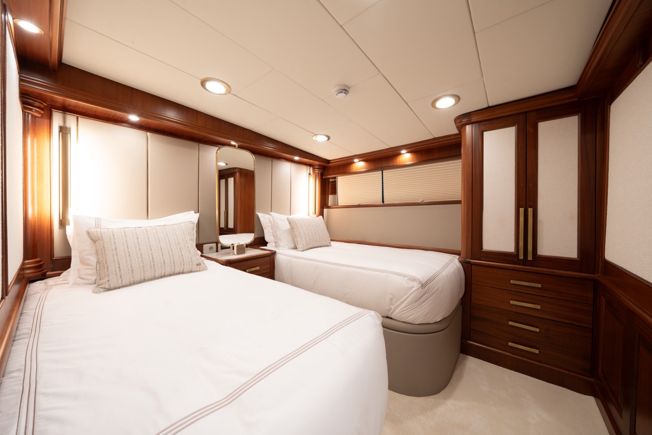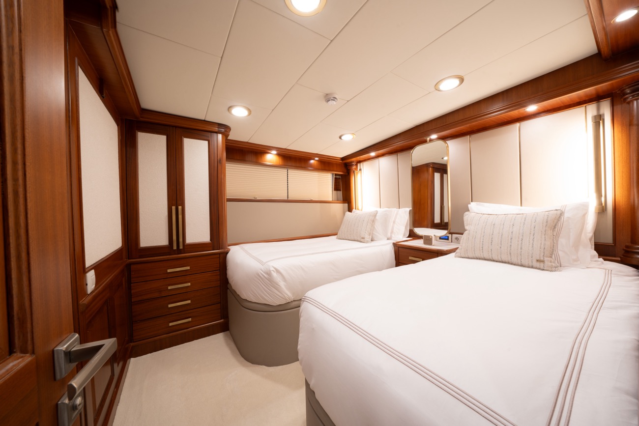 Accommodation is in 6 cabins: 2 master cabins, 2 double cabins and 2 twins… and this layout works very well for a large family, and for couples and singles travelling together.