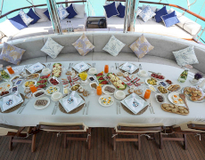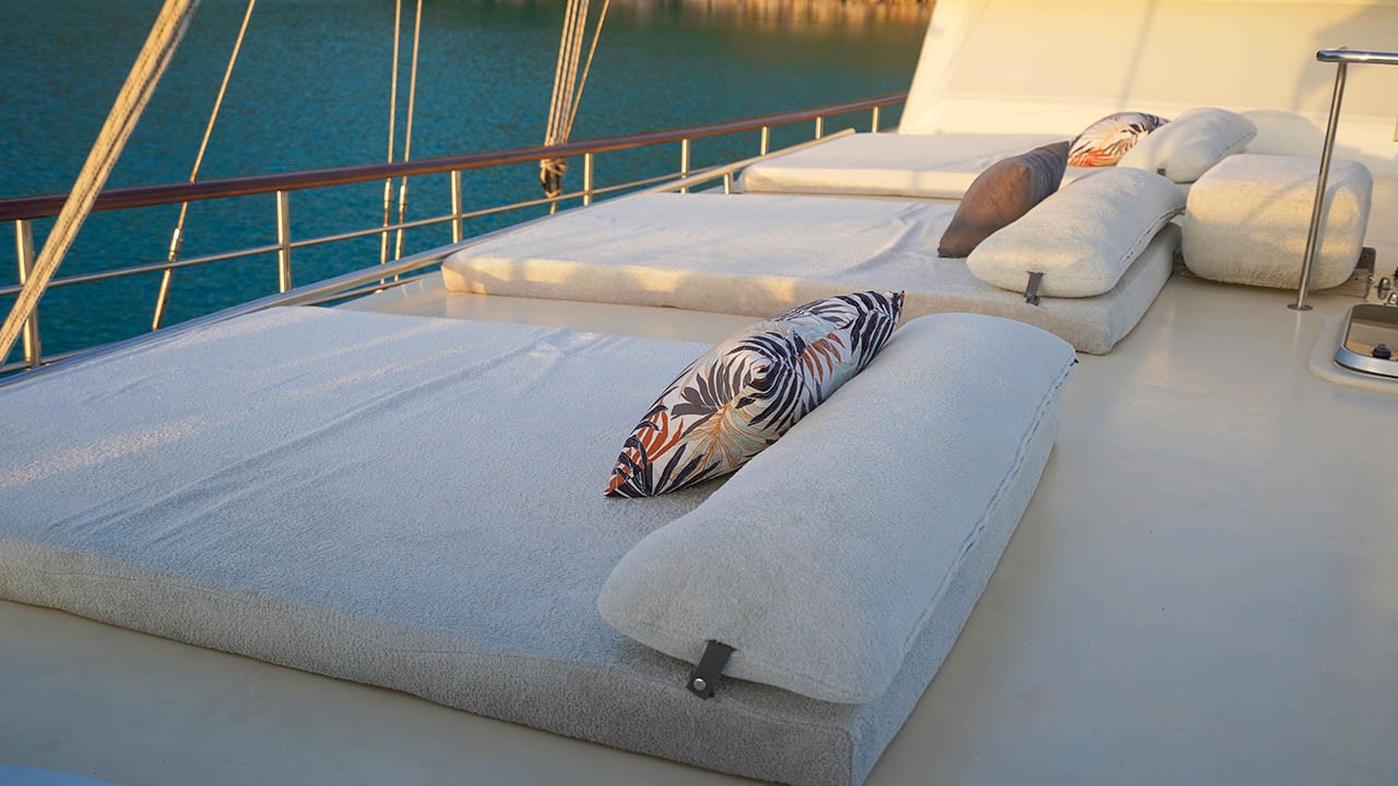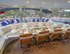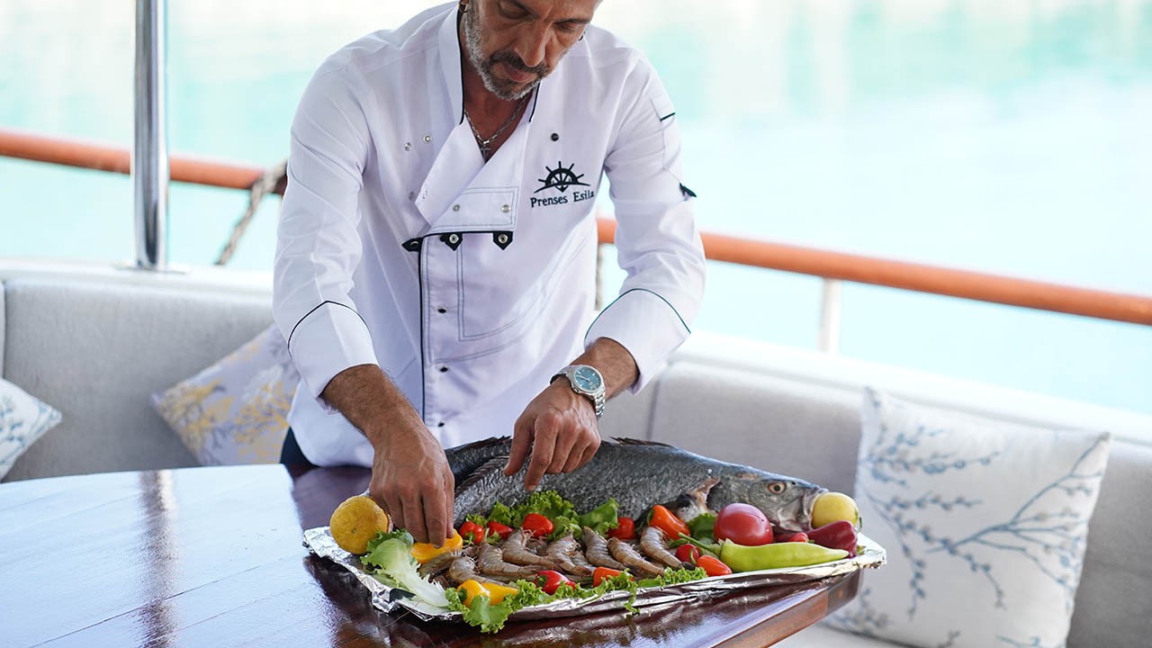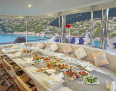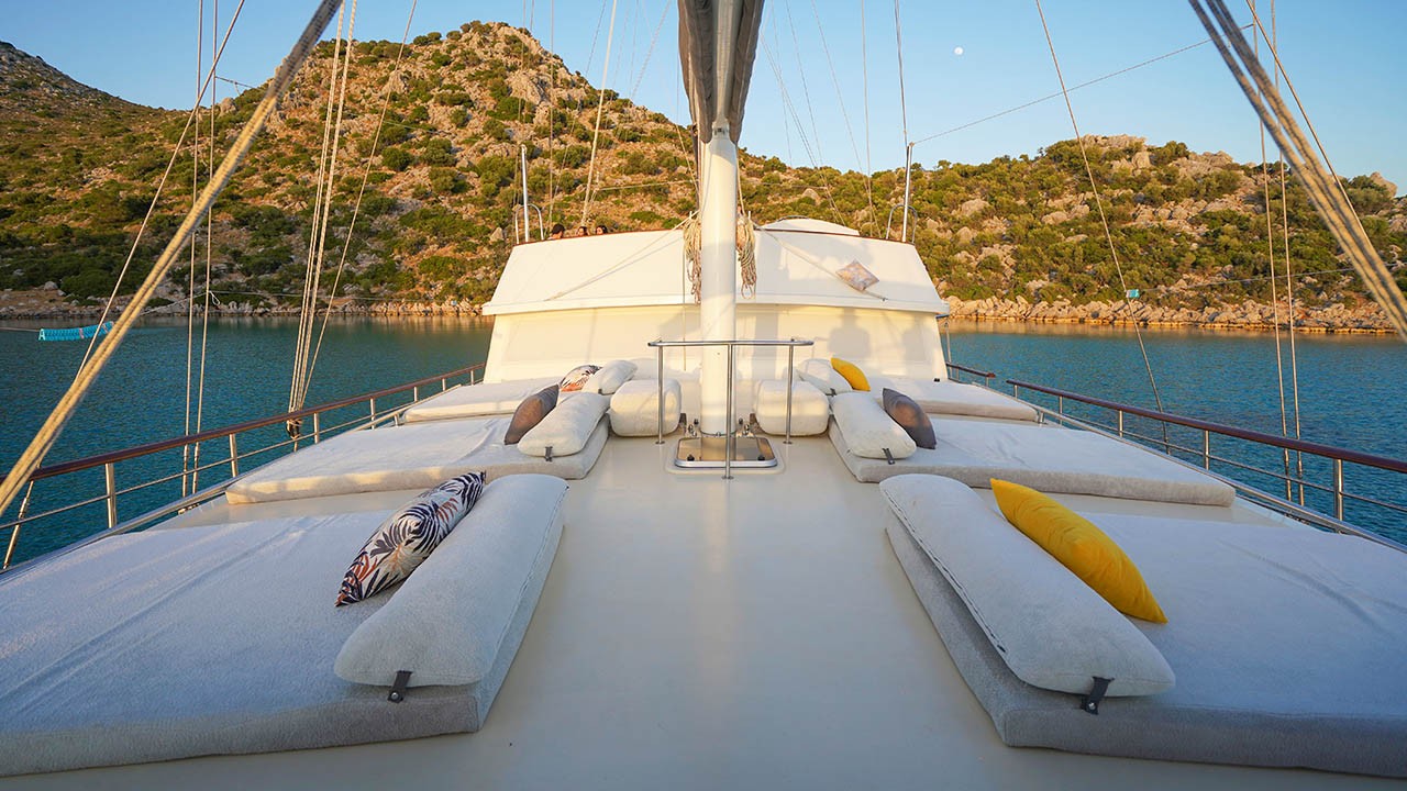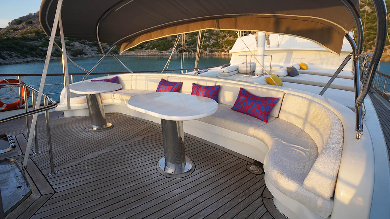 Charter rate includes, yacht insurance, fuel for average cruising time a day, daily cabin and bathroom cleaning, crew services, mooring fees in Türkiye, rent of the yacht, service boat, canoes, paddle boards, etc., ship's laundry (if available)