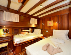 SAMARKAND gulet is available for charter in summer months from different Turkish ports. This gulet boat is one of the nicest in her price range. She offers a comfortable accommodation in 4 cabins (2 with Double bed and 2 with Twin bed). Each stateroom is ensuite.