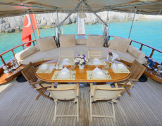 All meals and drinks for the charter, fuel for motor-operated equipment (tender, water sports), all marinas, all land tours, transfers, any personal expenses of the guests, crew gratuity (10-15% from the charter fee). Fuel surcharge for portion of charter outside of Turkish waters, any customs expenses if applicable.