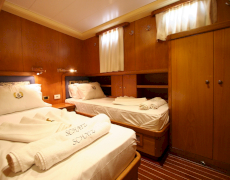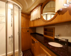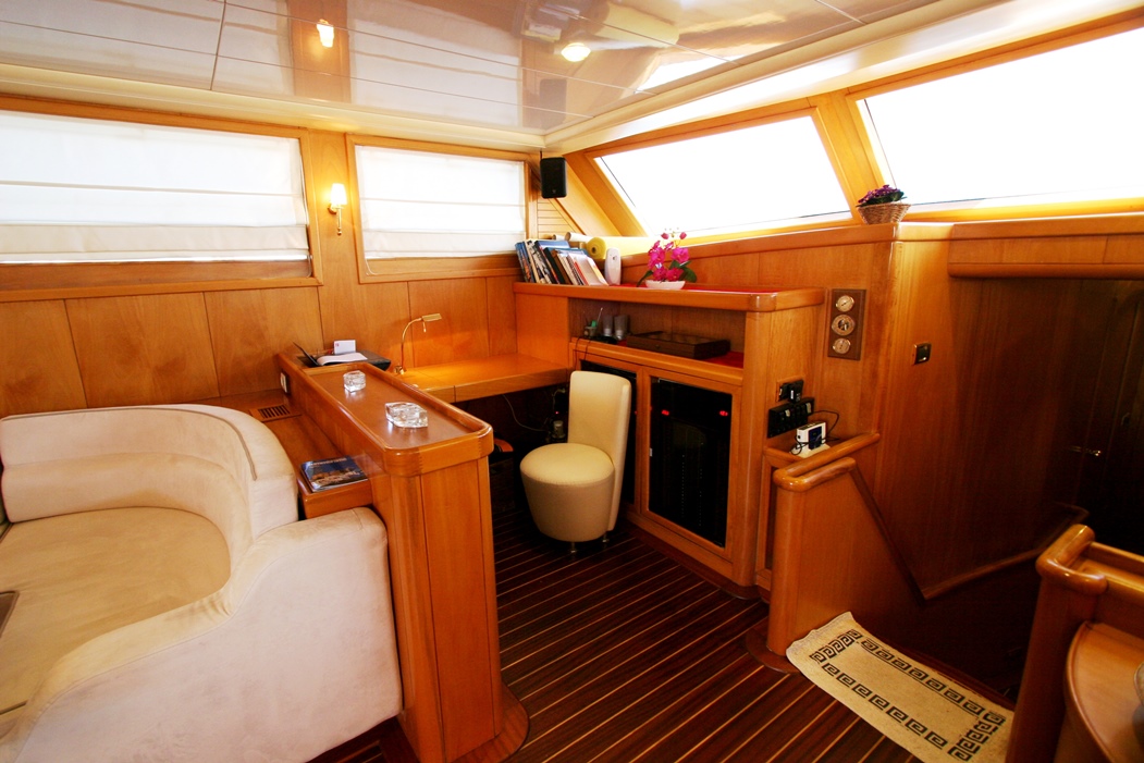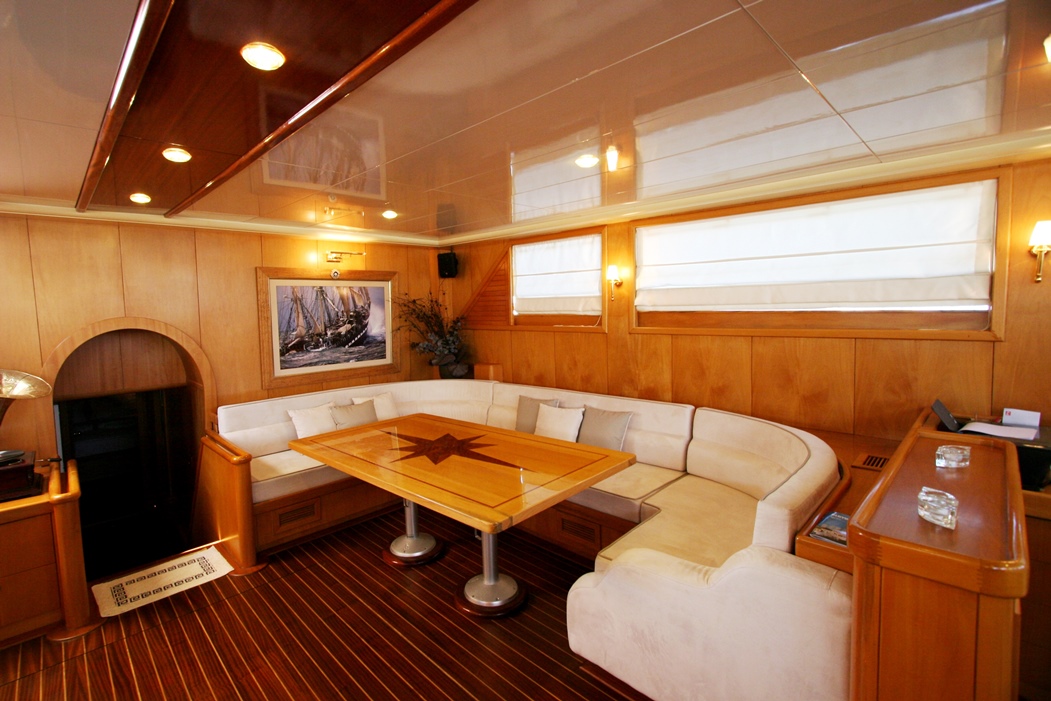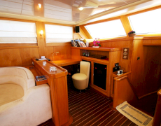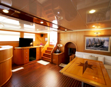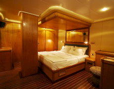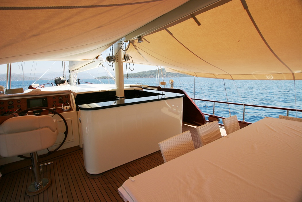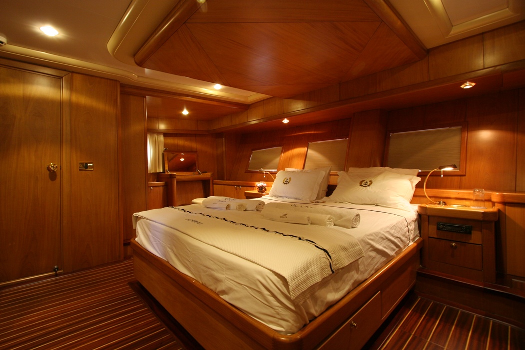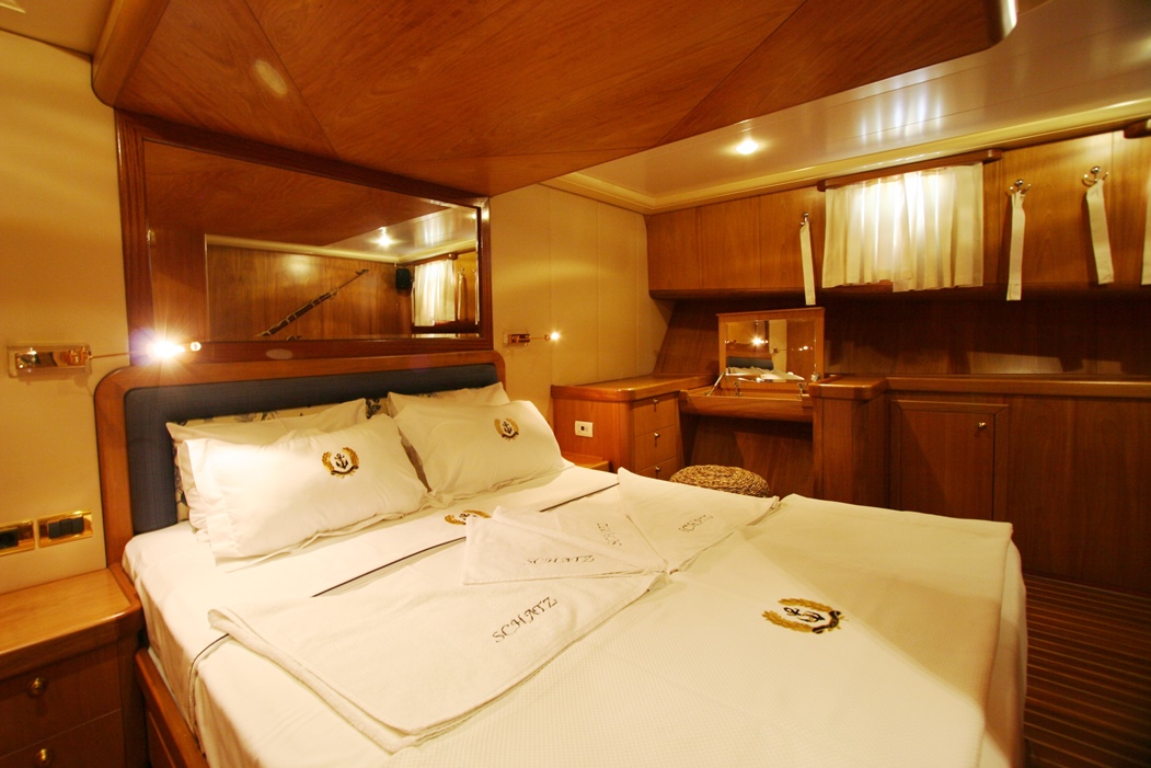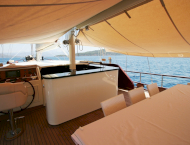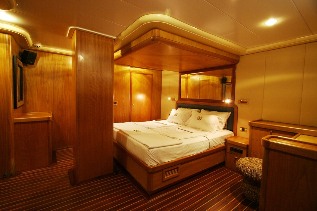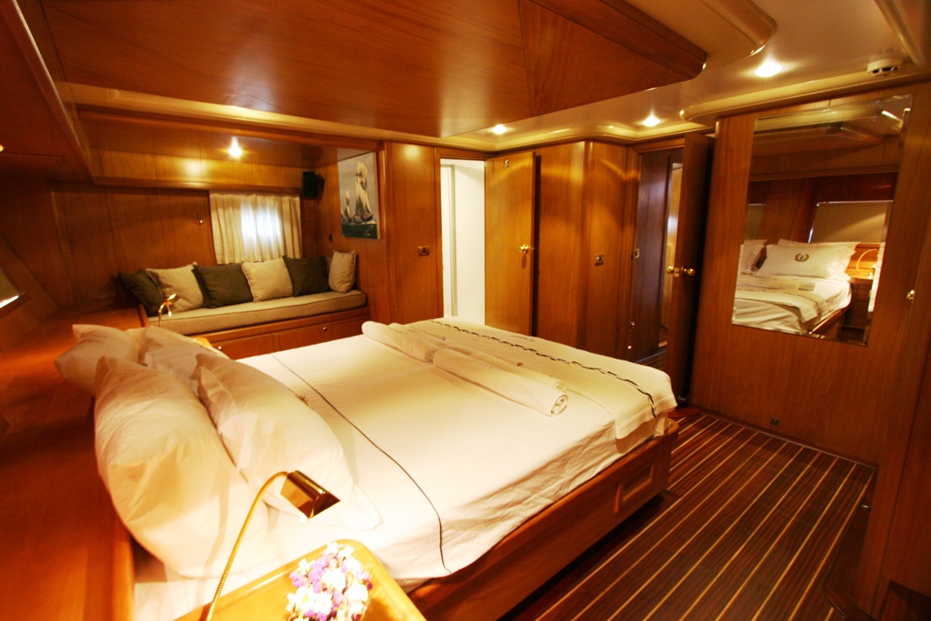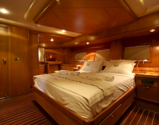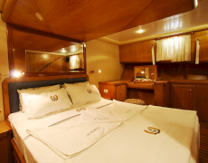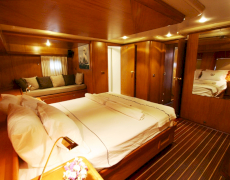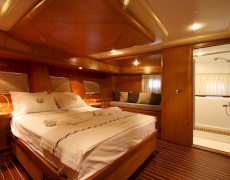 Her spacious and luminous saloon houses a fabulous entertainment system, complete with comfortable dining area and bar. This is the perfect place in which to relax in air-conditioned comfort, sampling a freshly-brewed Turkish coffee while the scenery glides by.