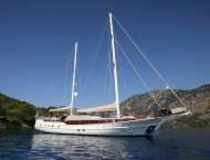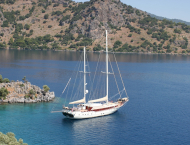 Gulet MEIN SCHATZ embodies the traditional Aegean gulet design and is the perfect choice for a relaxed cruising vacation on the Turkish coast. She is large enough so as to provide ample room for all those on board to find a quiet space and yet is small enough to be able to drop anchor in a tiny, jewel-like cove with a private pebble beach.