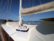 Gulet MEIN SCHATZ is fully-rigged for sailing and carries over 400 square metres of sail, so when weather conditions are favourable, your experienced crew of four will sail the yacht into the next harbour – a most enjoyable experience!