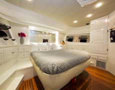1 forward master cabin with queen size bed, 1 port side double cabin with french size bed, 1 starboard double cabin with french size bed