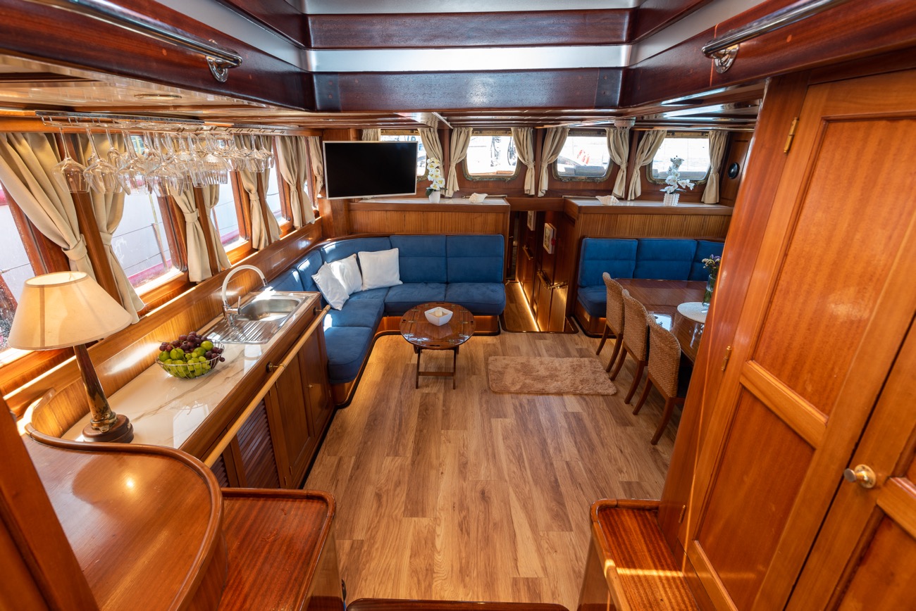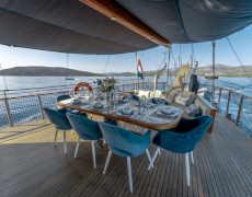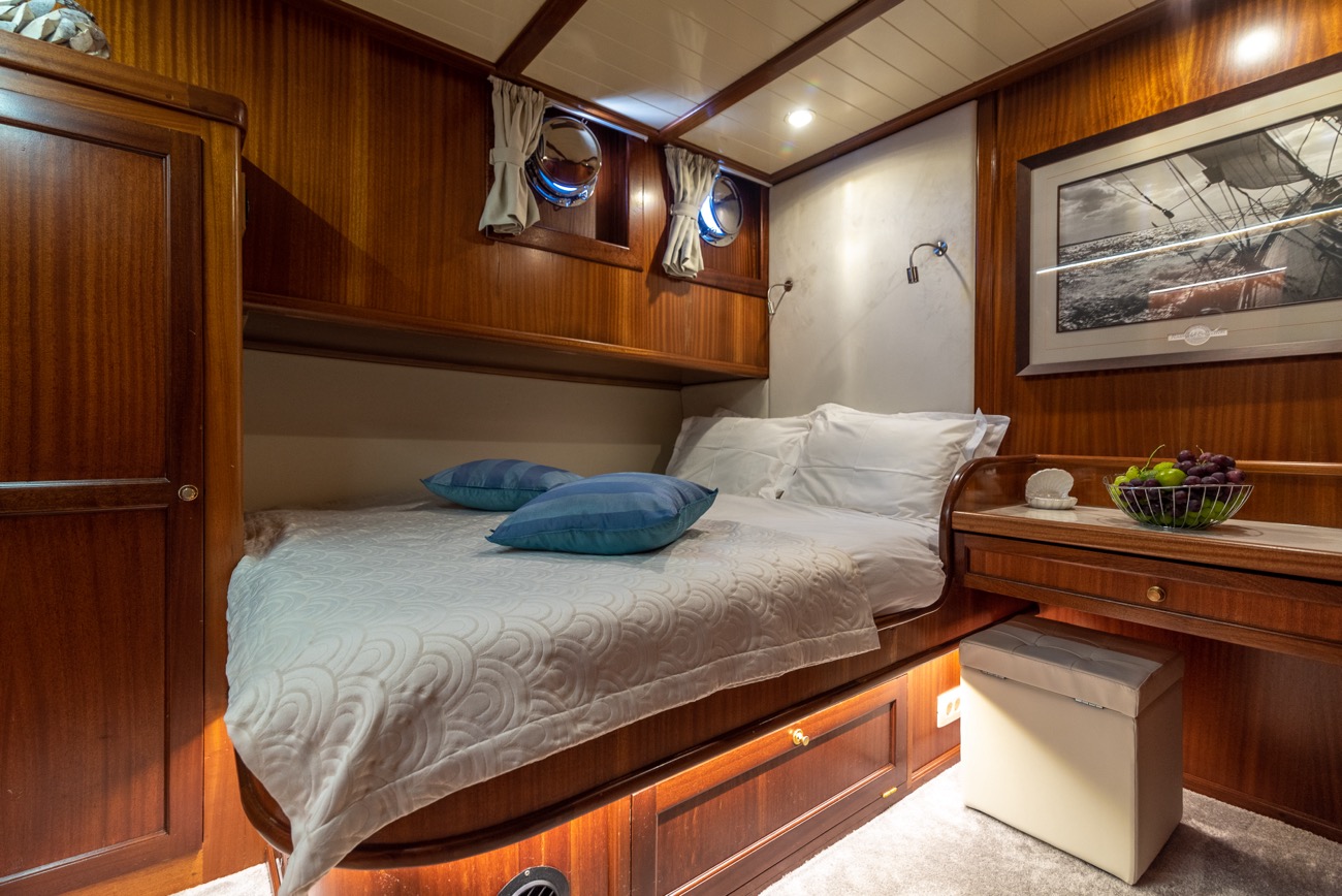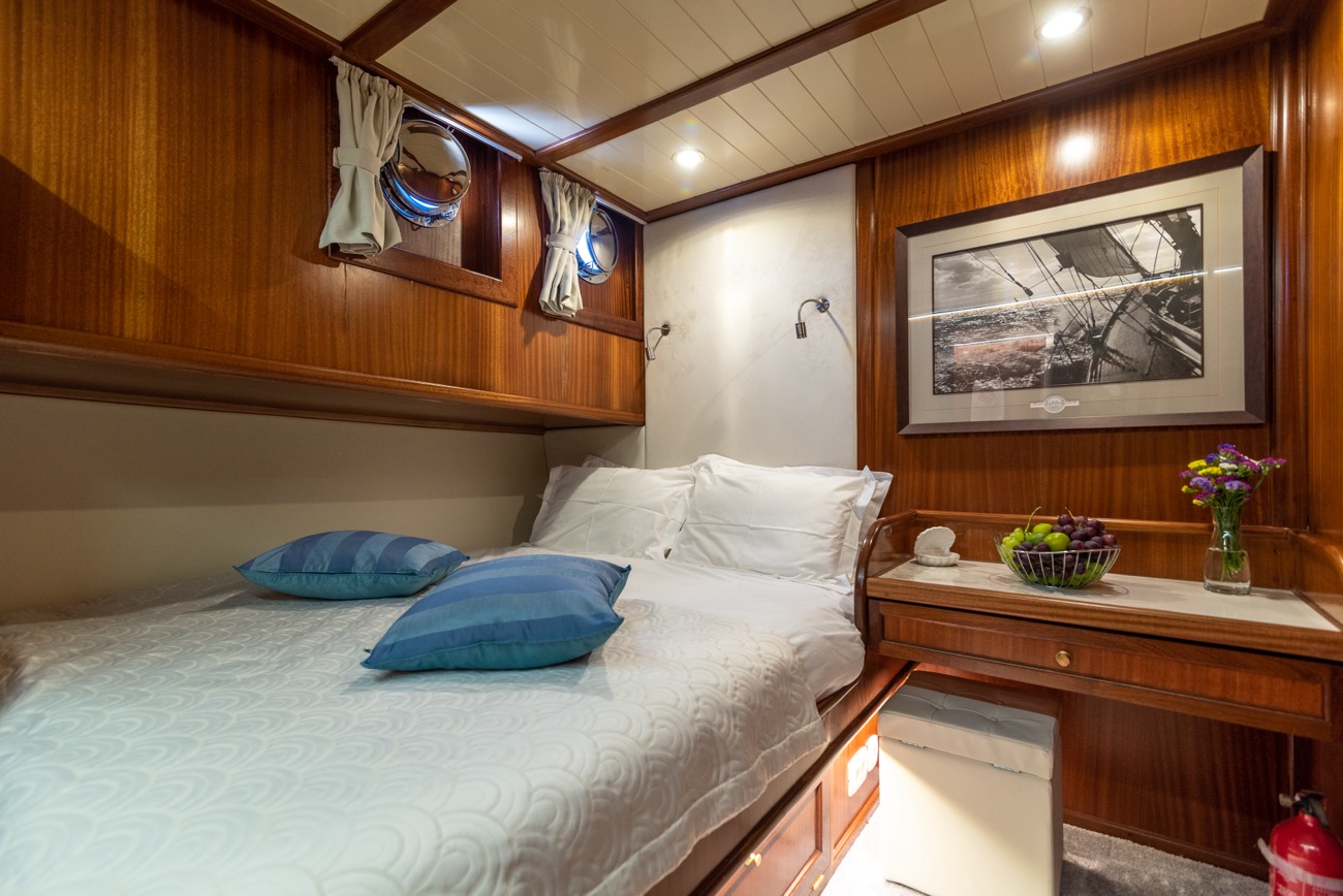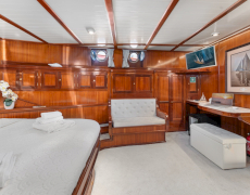 Charter rates include VAT, accommodation (maximum number of 8 guests sleeping in 4 cabins), fuel for cruising (4 hours/day), crew (4 crew members), unlimited A/C, linen (bed sheets, bathroom, and beach towels), Wifi