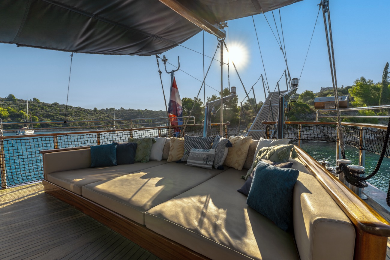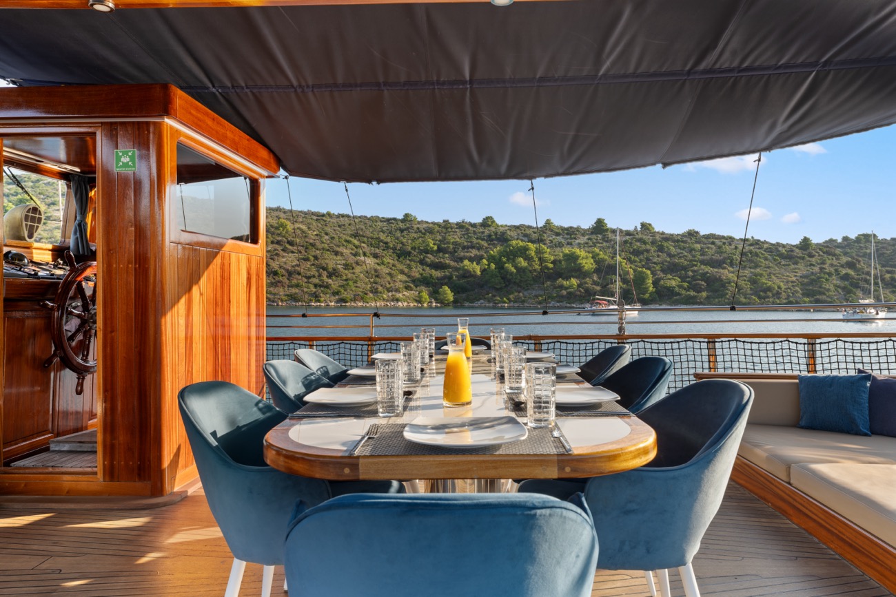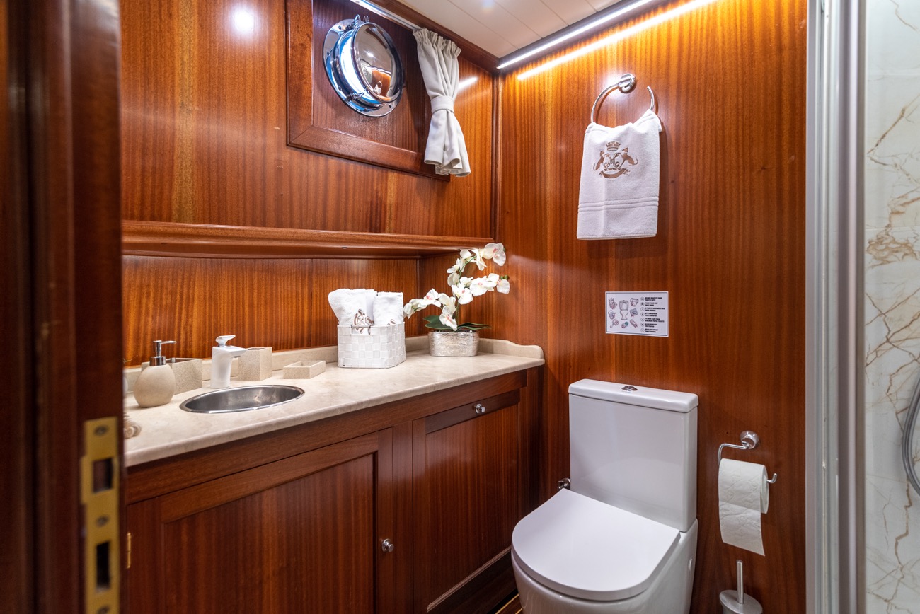Charter rates include VAT, accommodation (maximum number of 8 guests sleeping in 4 cabins), fuel for cruising (4 hours/day), crew (4 crew members), unlimited A/C, linen (bed sheets, bathroom, and beach towels), Wifi