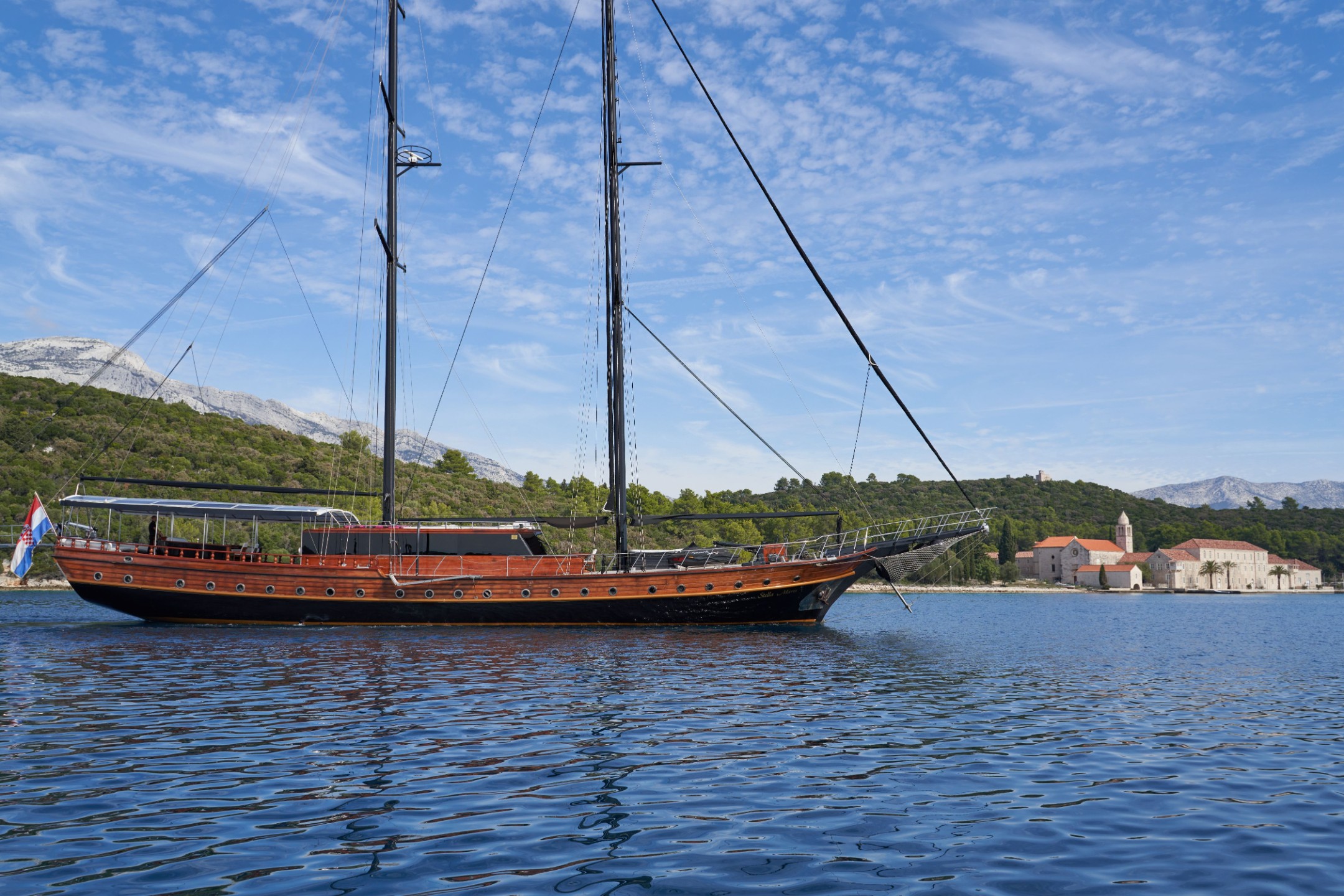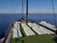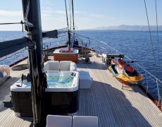 Charter rate includes, accommodation for maximum 16 guests in 8 cabins, crew of 7 and their expenses, insurance of the yacht, use of recreational equipment, tourist taxes, Wi-Fi.