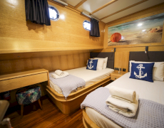 VAT, all meals and drinks for the charter, fuel for motor-operated equipment (tender, water sports), all marinas, all land tours, transfers, any personal expenses of the guests, crew gratuity (10-15% from the charter fee). Fuel surcharge for portion of charter outside of Turkish waters, any customs expenses if applicable.