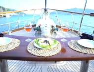VAT, all meals and drinks for the charter, fuel for motor-operated equipment (tender, water sports), all marinas, all land tours, transfers, any personal expenses of the guests, crew gratuity (10-15% from the charter fee). Fuel surcharge for portion of charter outside of Turkish waters, any customs expenses if applicable.