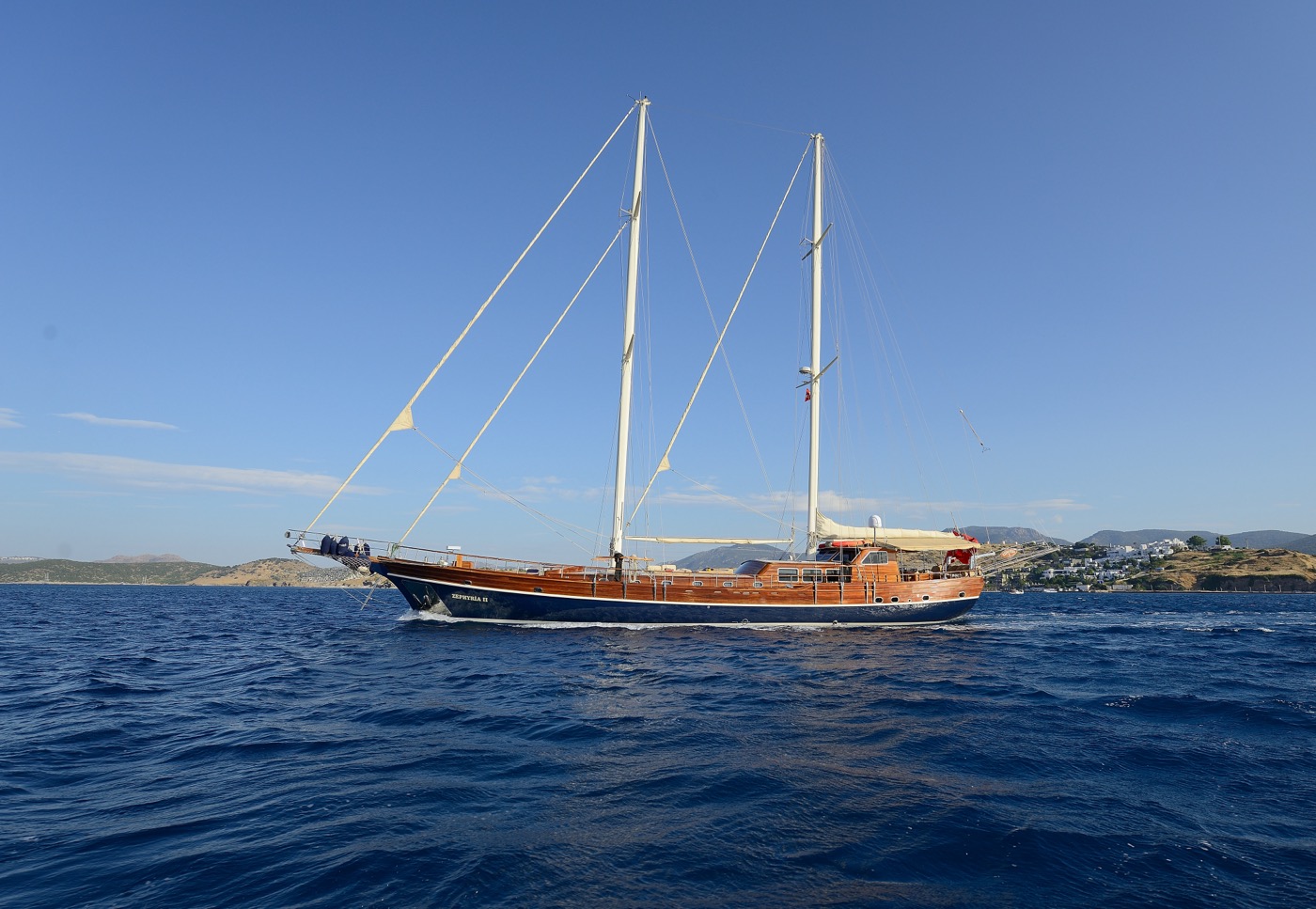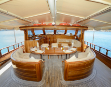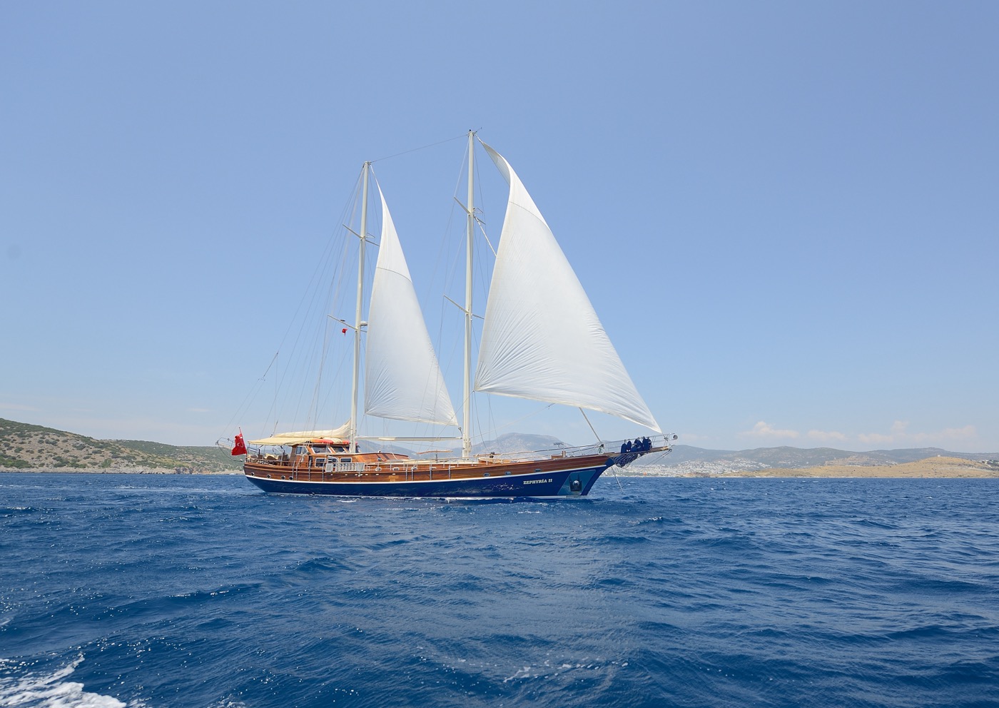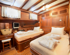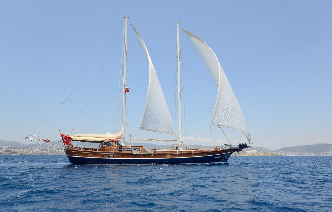 ZEPHYRIA II is available for yacht rentals from Bodrum and other Turkish ports depending on her booking schedule. ZEPHYRIA II is a classic Turkish gulet and she offers comfortable deluxe accommodation for 12 guests in 6 cabins. The yacht carries a good selection of water toys equipment that can be enjoyed once anchored in a nice secluded bay.