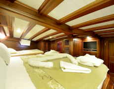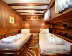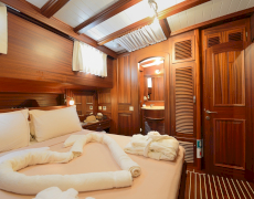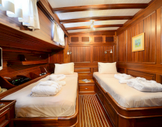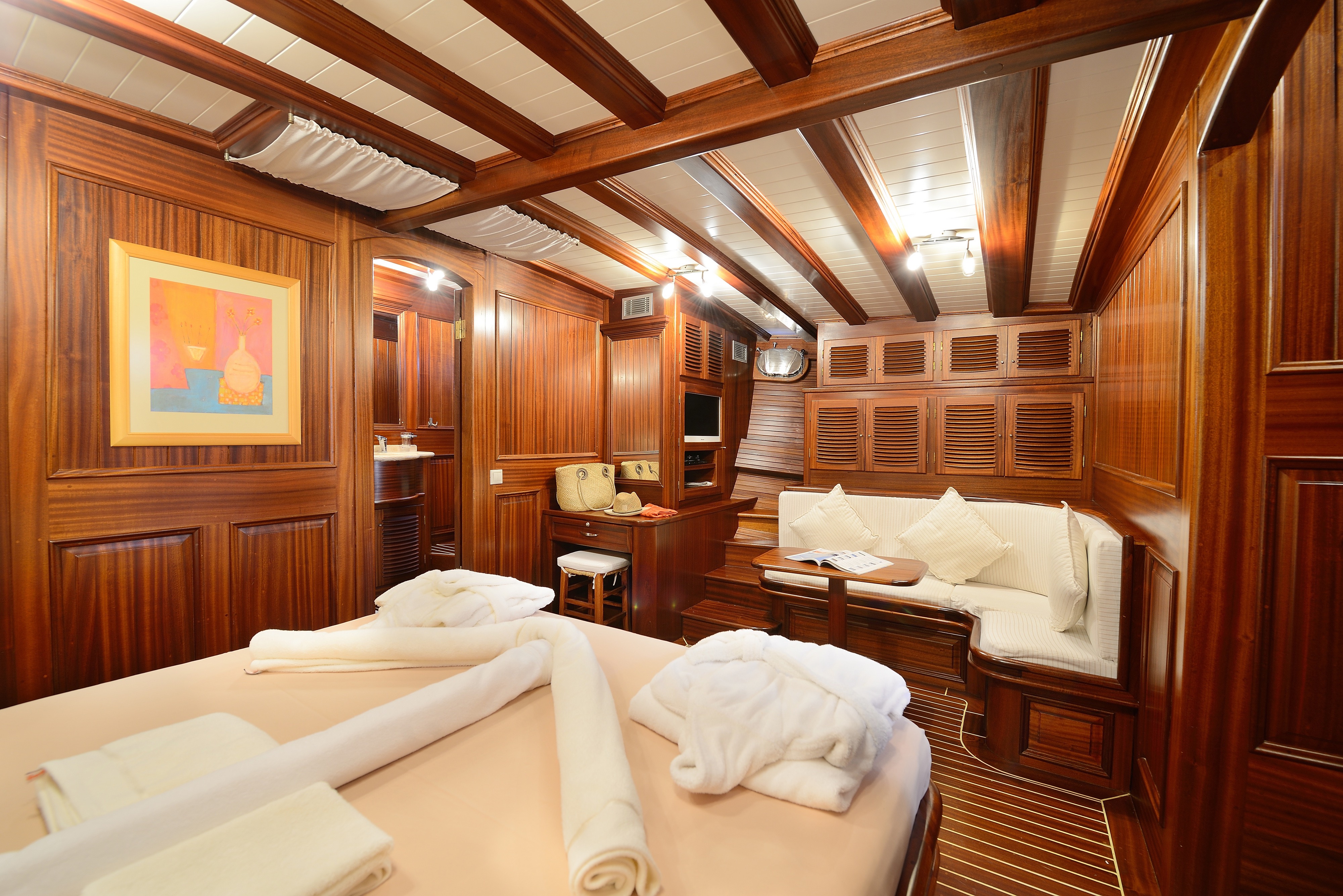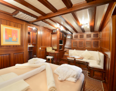 Two master cabins, two double and two twin staterooms (which upon request can be converted to double beds), all with vanity table sets.