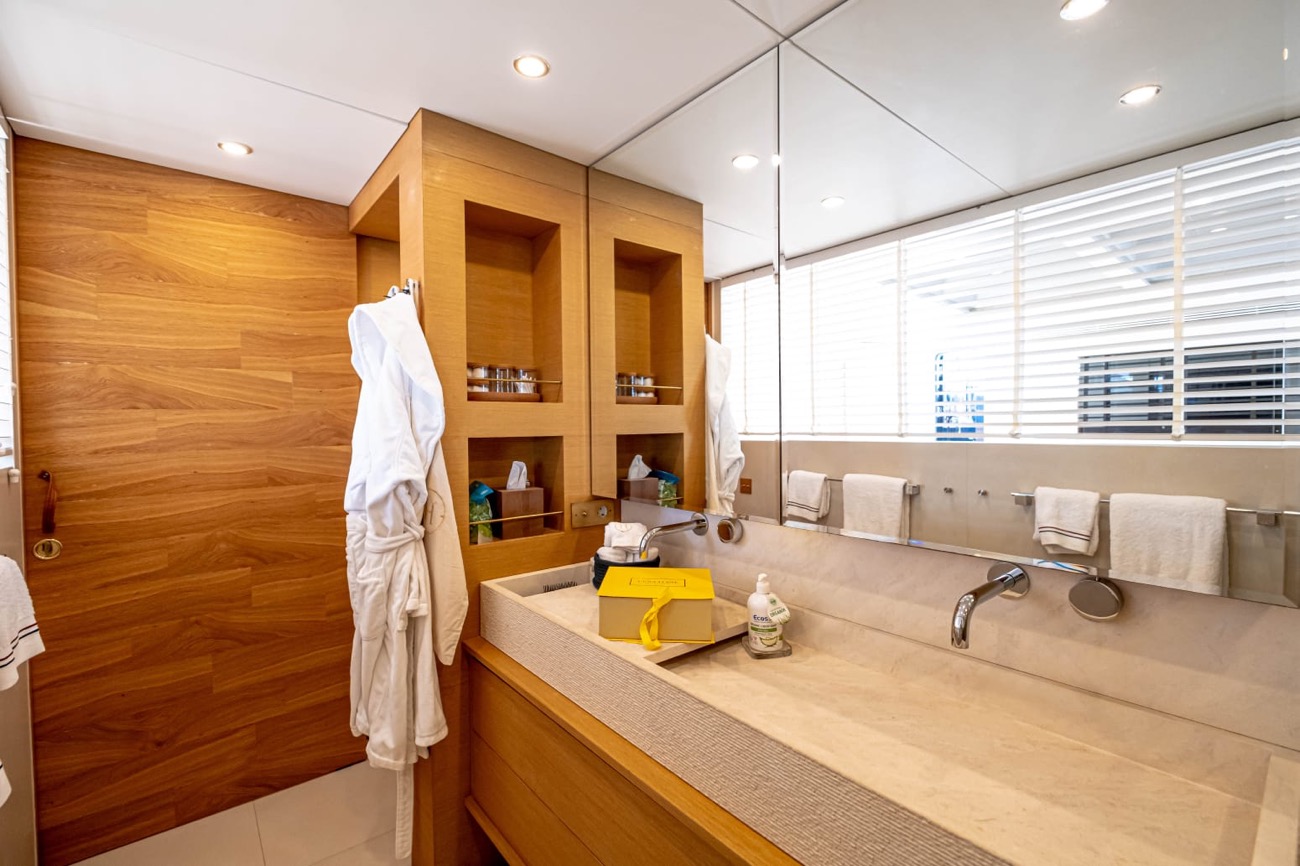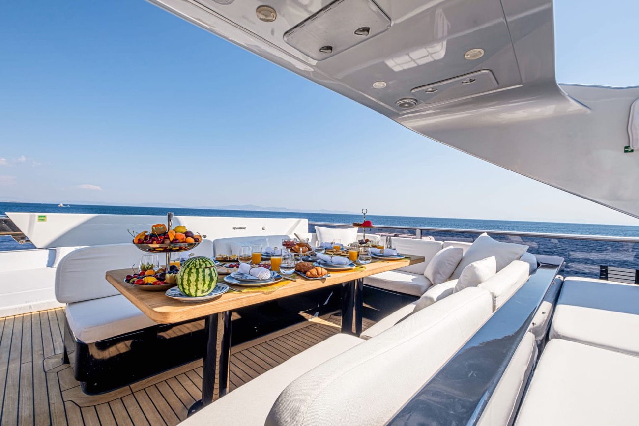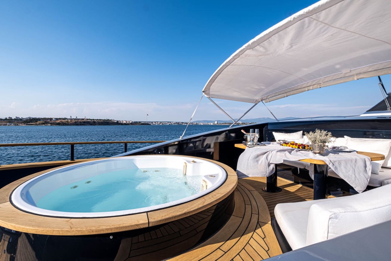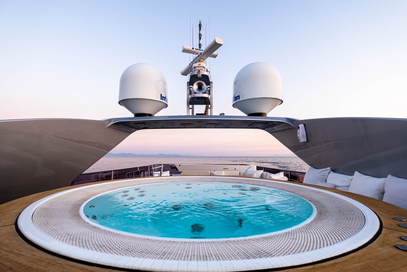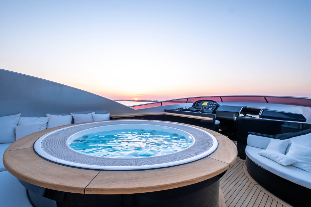 2 Jacuzzi (one is located on flying bridge, a few steps away from the bar having 2.40 m diameter and sitting up to 7 people, the second Jacuzzi is set on the front deck, sitting 5 people)