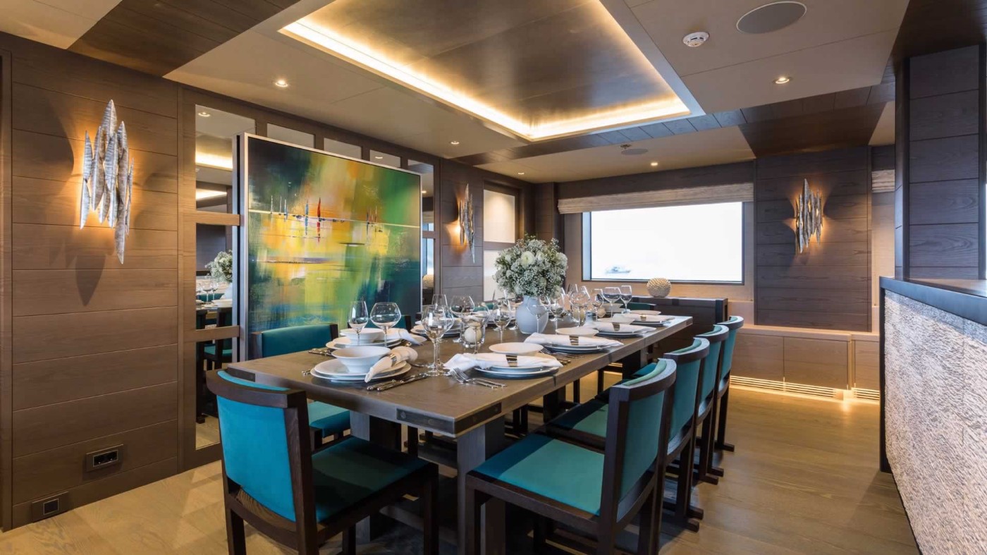 The yacht accommodates 10 guests in 5 ultra-luxury suites. Each is spacious and features all the amenities for a comfortable sailing holiday. Guests are welcome to stay in one full beam master suite with his and her closets and bathrooms, two VIP cabins, and two twin staterooms.