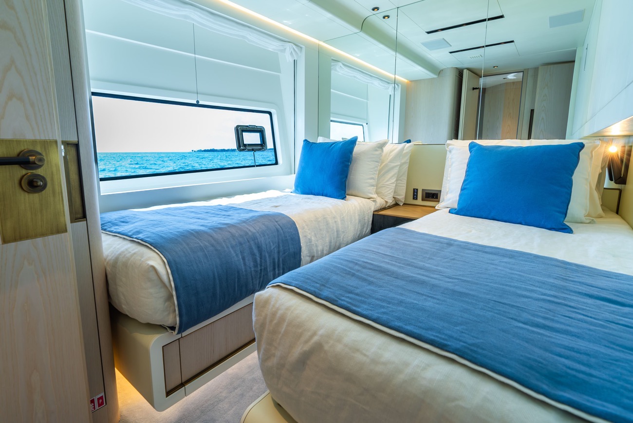 1 master suite, 1 double cabin, 1 Twin and 1 convertible cabin