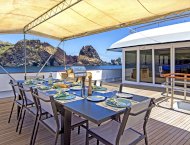 Charter rate includes crew, naturalist guide, fuel for the yacht, generators and tenders, all meals taken on board, port fees and dues.