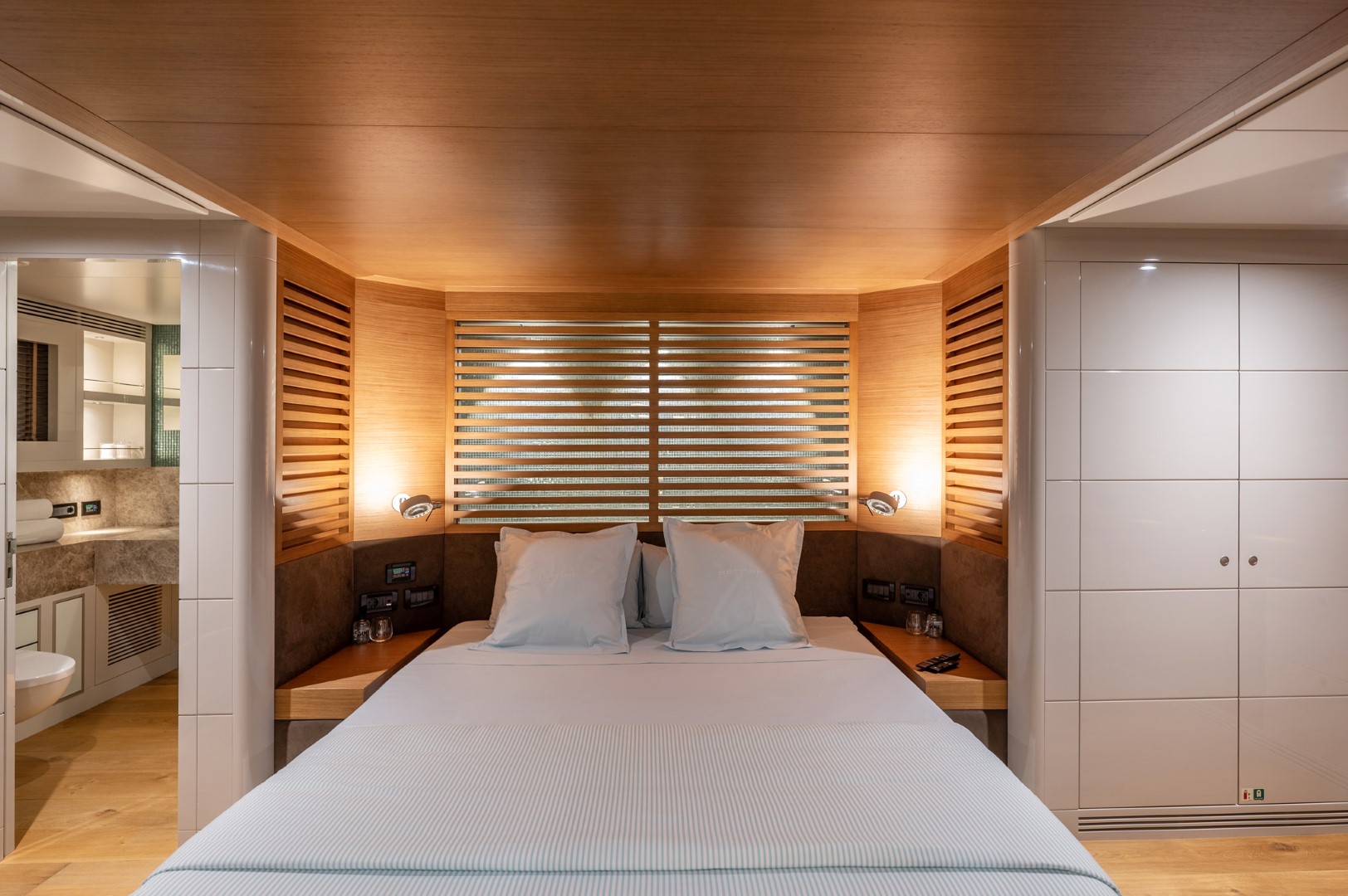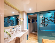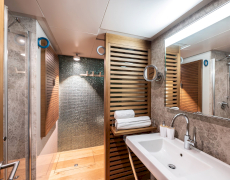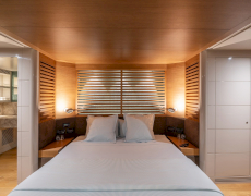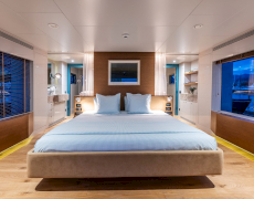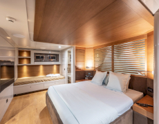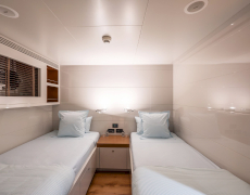 1 master suite on the upper deck, 1 full-beam master suite with additional single bed & 2 twin bed cabins on the lower deck
