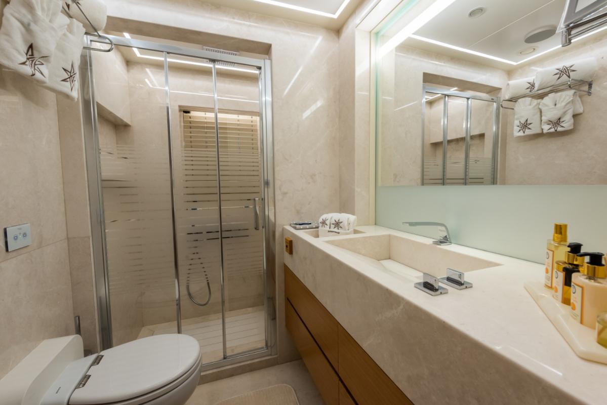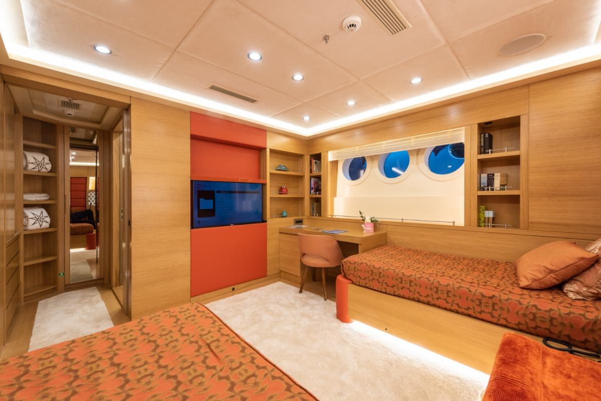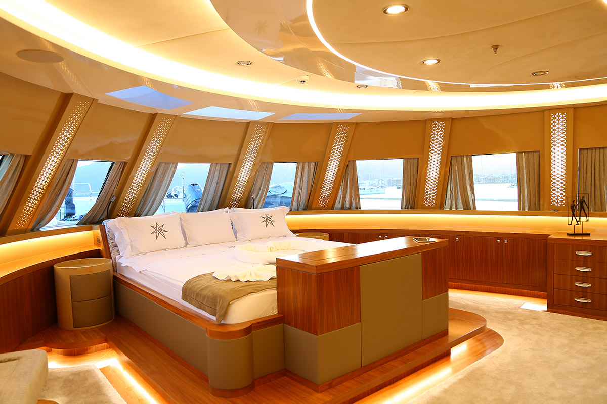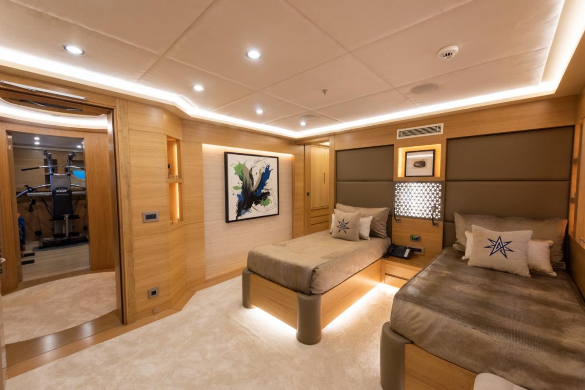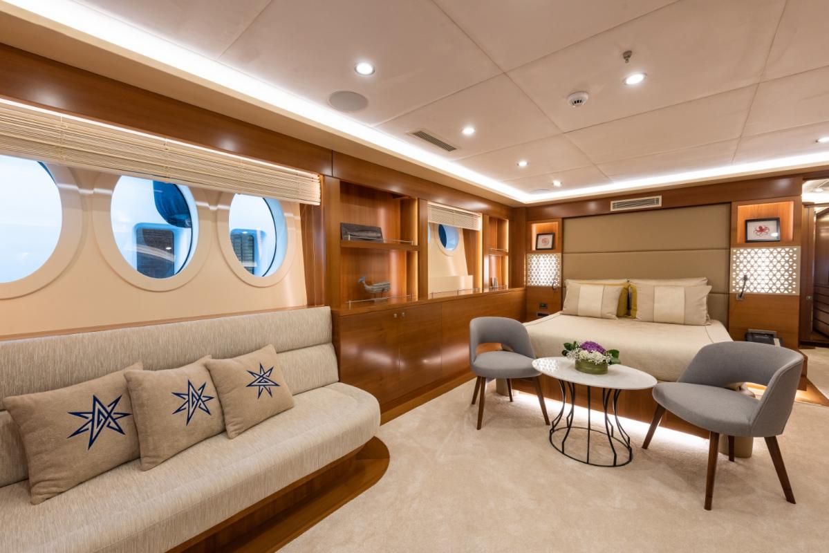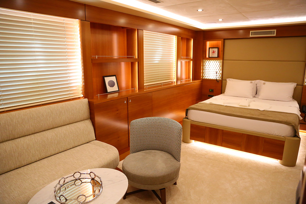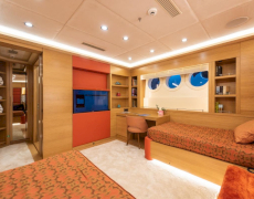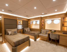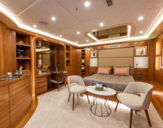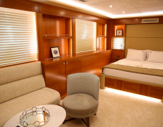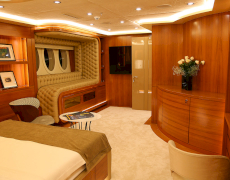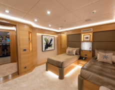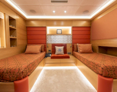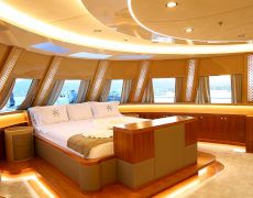 12 guests are welcome to enjoy ultra chic accommodation in 6 luxury appointed staterooms each with en-suite facilities. The yacht features a Master suite, 2 VIP staterooms, one double and two twin cabins.