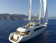 Super luxury sailing yacht ARESTEAS is a masterpiece in the modern world of yachting. This powerful and magnificent vessel is unique featuring everything that one can possibly wish for while cruising in the Mediterranean. You can charter this beautiful vessel in Turkey, Italy, and France.