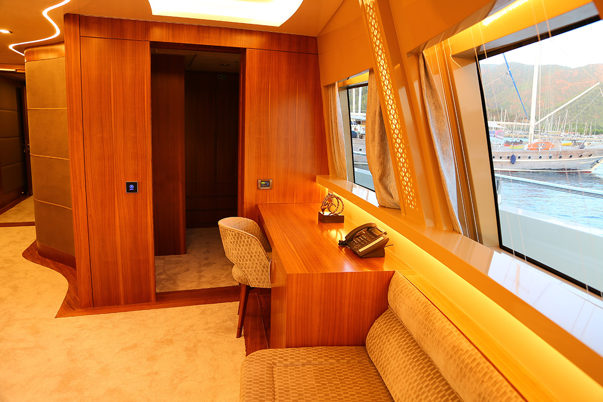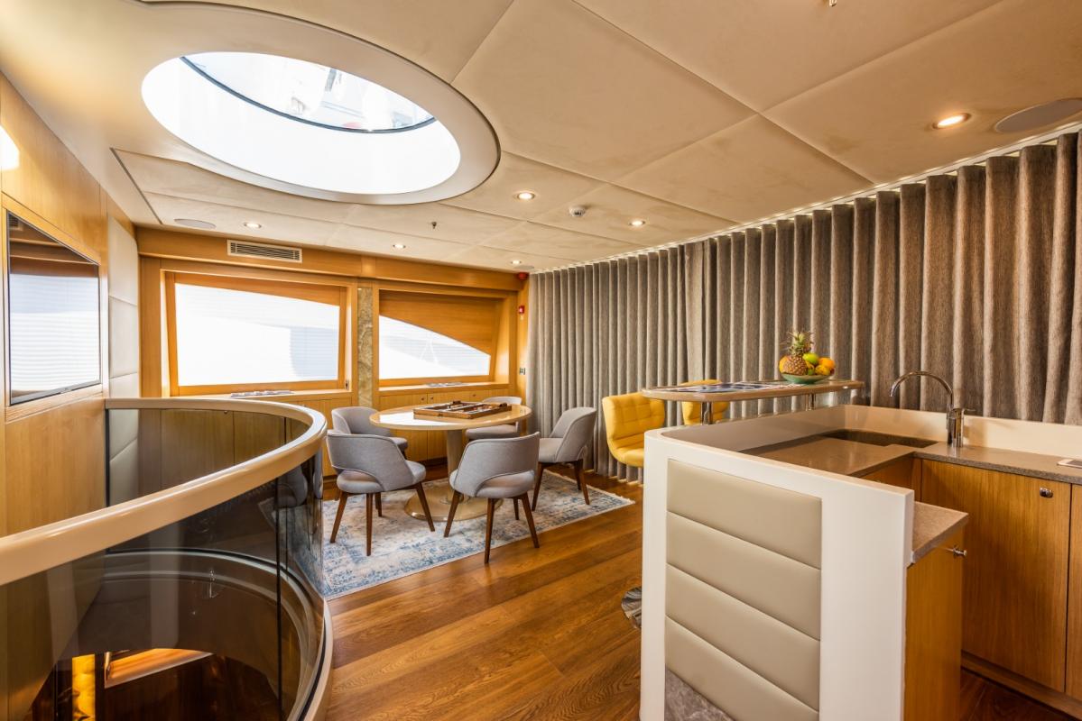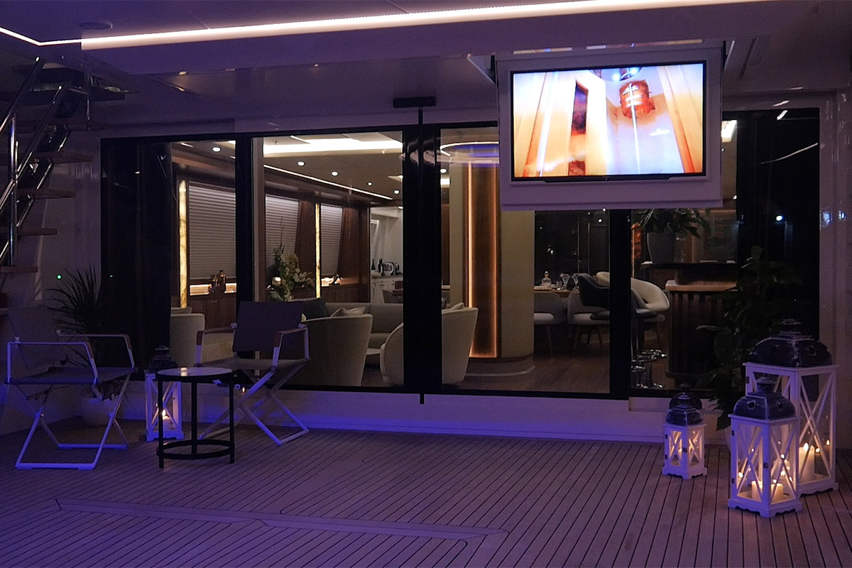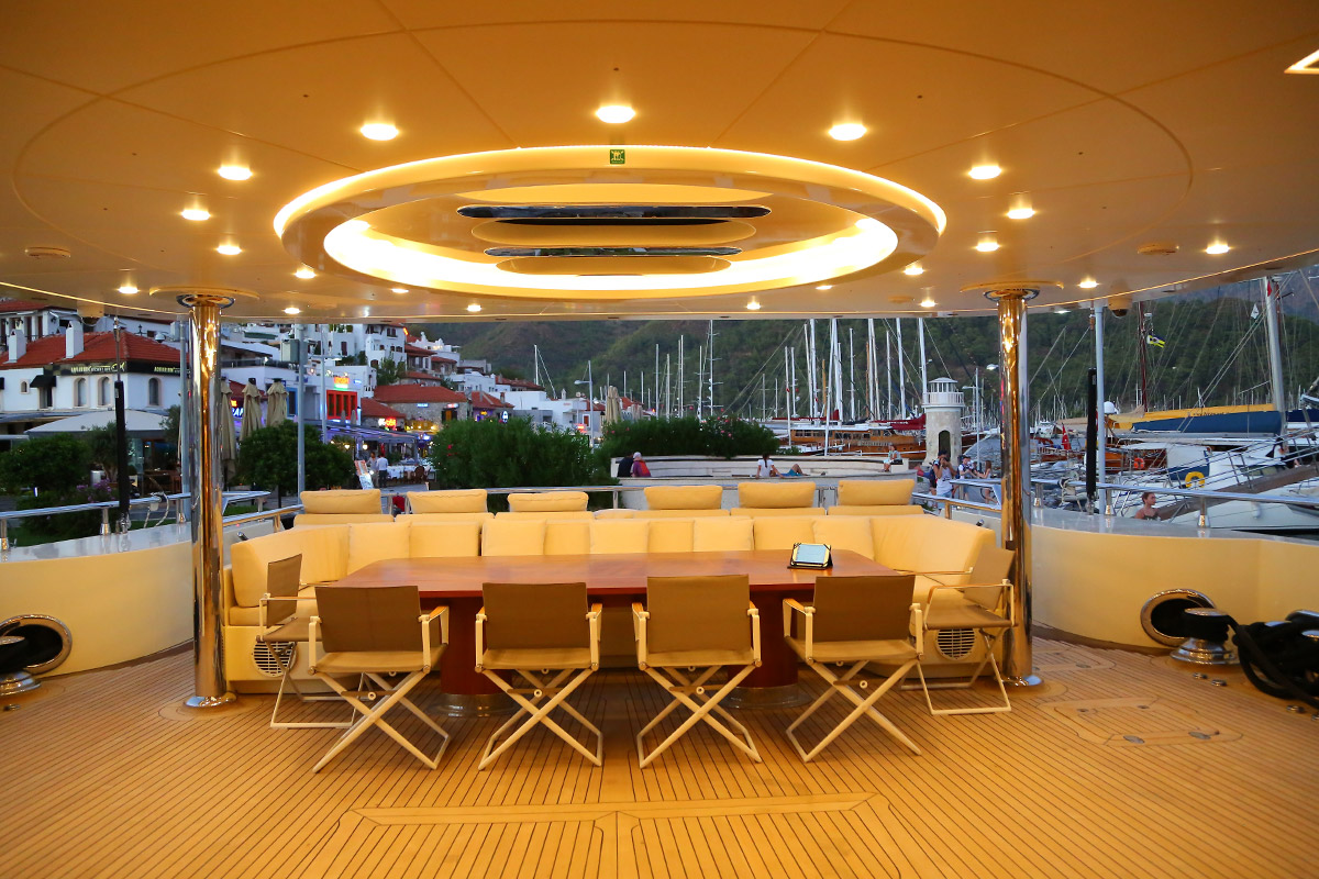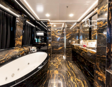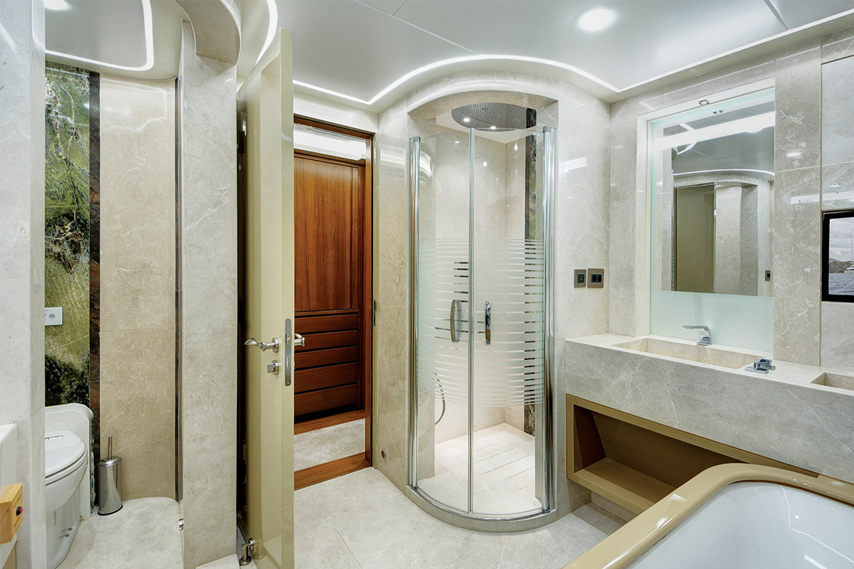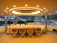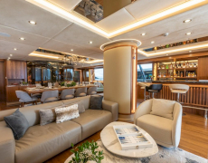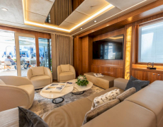 Spacious decks, elegant interior design, Jacuzzi on the deck, BBQ, sauna, massage & fitness room are at full disposal for charterers to enjoy during a yachting vacation with a family, friends, or business partners.