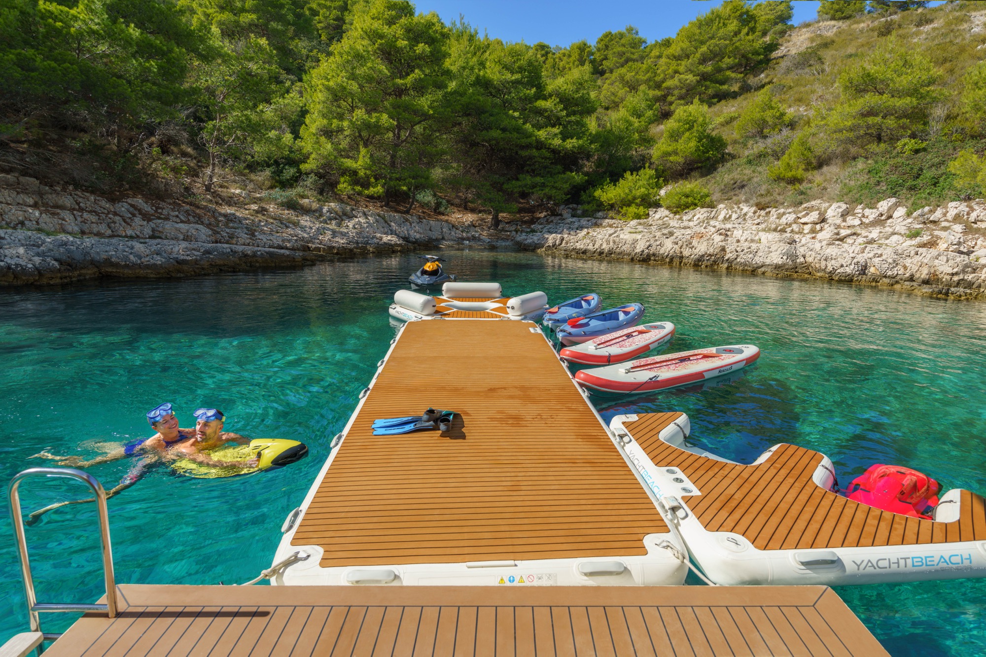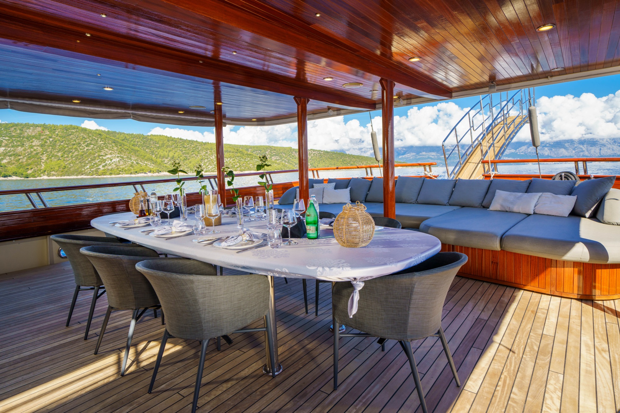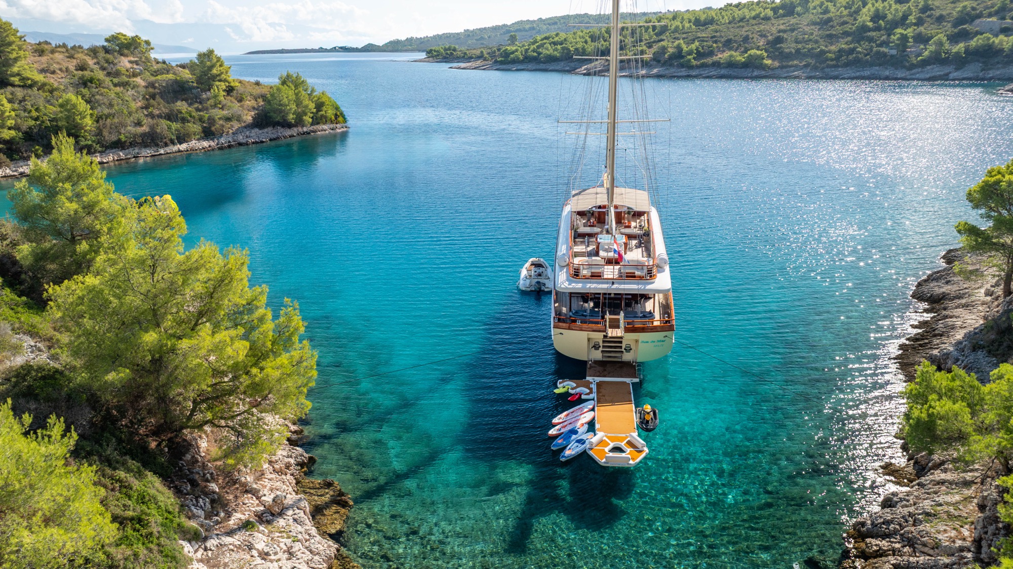 Accommodation for a maximum of 12 guests in 6 cabins, the crew of 8 and their expenses, insurance of the yacht, use of recreational equipment, tourist taxes, and Wi-Fi.